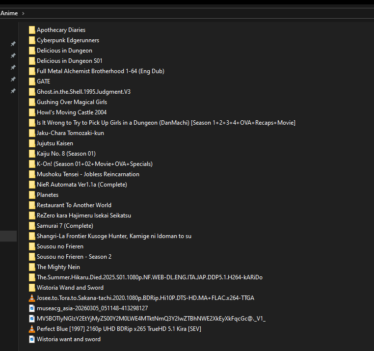>>221100997no I have not but I'll give it a download. here's my anime folder prepared for shipceling bro tho I've already watched GATE and Delicious in Dungeon>>221100829bro he's like the 1% with that kind of money anywhere is good and japan probably top tier plus the low chance of getting stalked or attacked since his audience isnt japanese