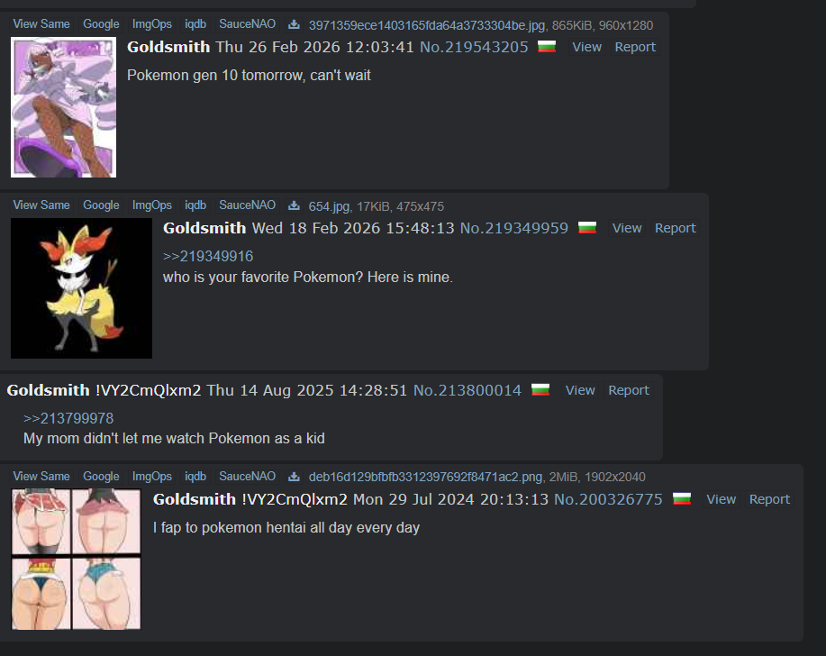 >jerking off to pokemon>not even THE pokemon but the human slootsMeh, guy is pretty normal. Back when we were kids in class everyone gooned to anime.