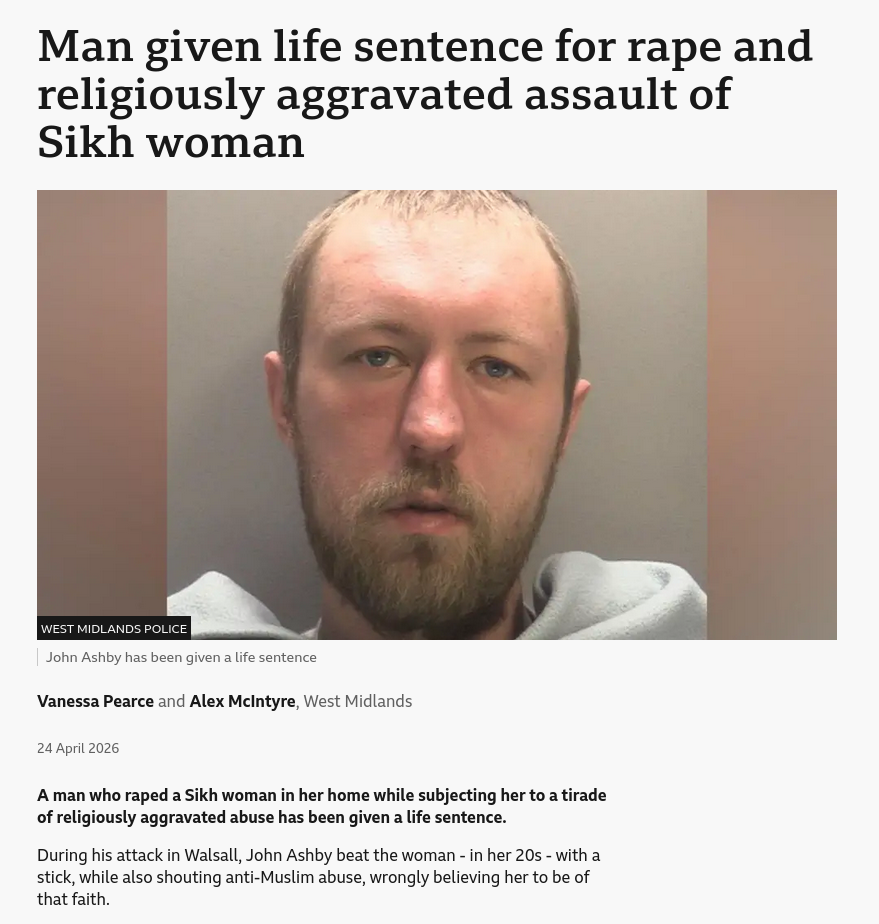 >>221095777>some of them target white girls to be rapedI dunno if that's true, but there was a white man who was sentenced the other day for raping a Sikh woman, and he directed Islamophobic abuse at her during the attack, since he falsely believed she was a Muslim.