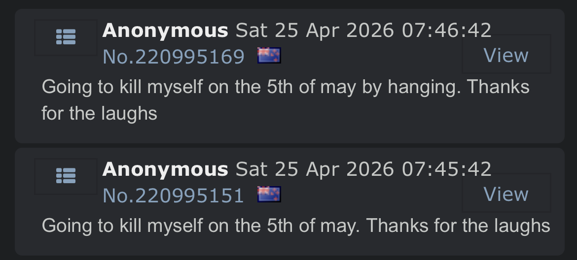 >>221095853Are you still planning to hang yourself next week?