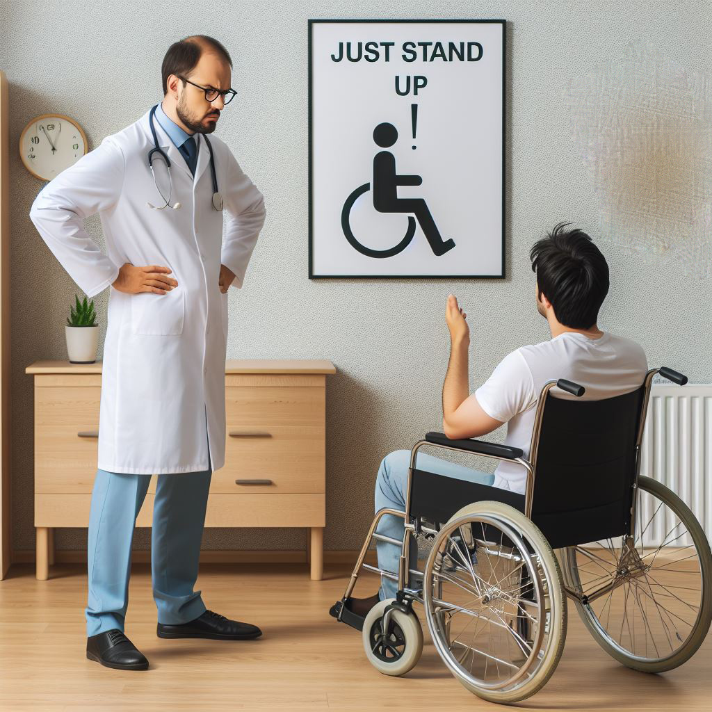 Does any bumgarian have that AI picture of a doctor yelling at a wheelchair-bound patient and the sign says "just stand up". I know I have it somewhere in my folder but I didn't name it.
