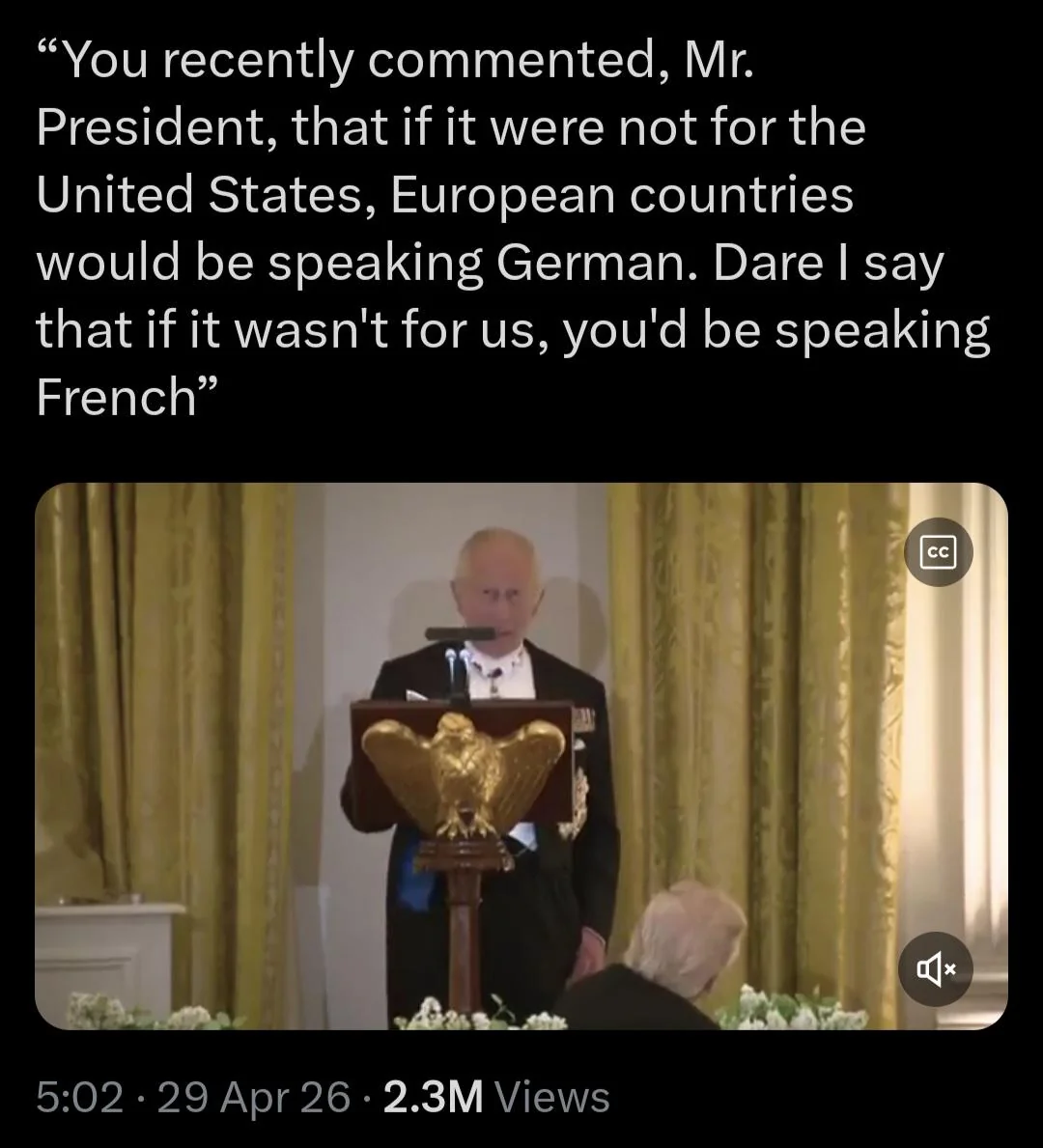 The dick-eating is crazy but: I'd like to thank His Majesty King Charles for visiting our country and addressing congress. I hope he felt welcome and had a nice time here.