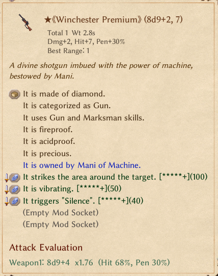 >>50530152Hi, Centaur Space Marine Inquisitor here. Just keep both. They work at different ranges. I still carry my shotgun for when things get close or crowded, meanwhile my AR is the general-purpose single-target removal from anywhere past point blank. If you wanted an all-purpose gun you'd take a Laser Pistol since it's the only one with optimal range 2, and you get benefits instead of penalties as long as you're within 1 of your optimal range band. Also it has far and away the most penetration value so even without being a Centaur you can punch through tanky targets. Side note, while the Winchester Premium's AoE doesn't hurt allies, the Gravity Gun/Gravitational Beam Emitter and Panzerfaust's explosions do, and you can shoot yourself with them. This means if you want the Impact element and the Dim and other shit it can inflict for CC you have to choose between worst effective range (Shotgun), accidentally nuking your allies (Panzerfaust), or inflicting a fuckton of statuses on your allies (Gravitational Beam Emitter).