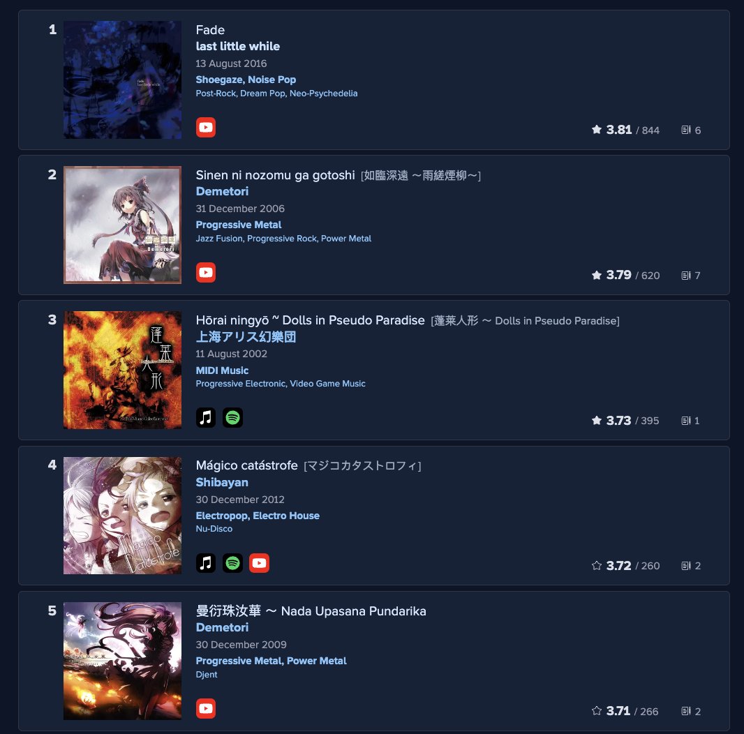 The top rated Touhou albums on RYM is a really fascinating list