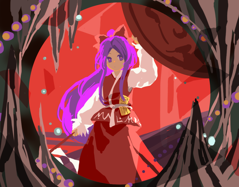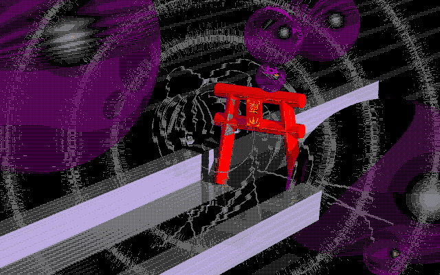 Anyone has info or theories on the backgrounds of HRtP? Or knows where I could look up info or ask for it?They seem quite abstract and I'm not sure if there's any meaning behind them.For example for the shrine it feels like it got flooded by water seeing the "ripples" and Reimu's reflection. But maybe I'm a bit biased about that since Eternal Shrine Maiden has a lot of water sounds in DiPP.The orbs are quite mysterious, top left one feels like it's distorted by waves, clouds or similar. The "walls" making a path with the torii seem to fade in the dark or lead to "paths" that repeat in the distance.The torii also has what seems to be a kanji and a flame symbol. The first kanji could be the one in 博麗. And maybe the flame represents the second kanji, somehow... Since shrines usually have their name on the toriiAlso CGツクール3D2 (Computer Graphics maker 3D 2) was used to make some backgrounds according to this:https://docs.google.com/document/d/1IT__t1TH0wY64w_zVxw1IesSoPoUgba80H18RT2SnMw/pub