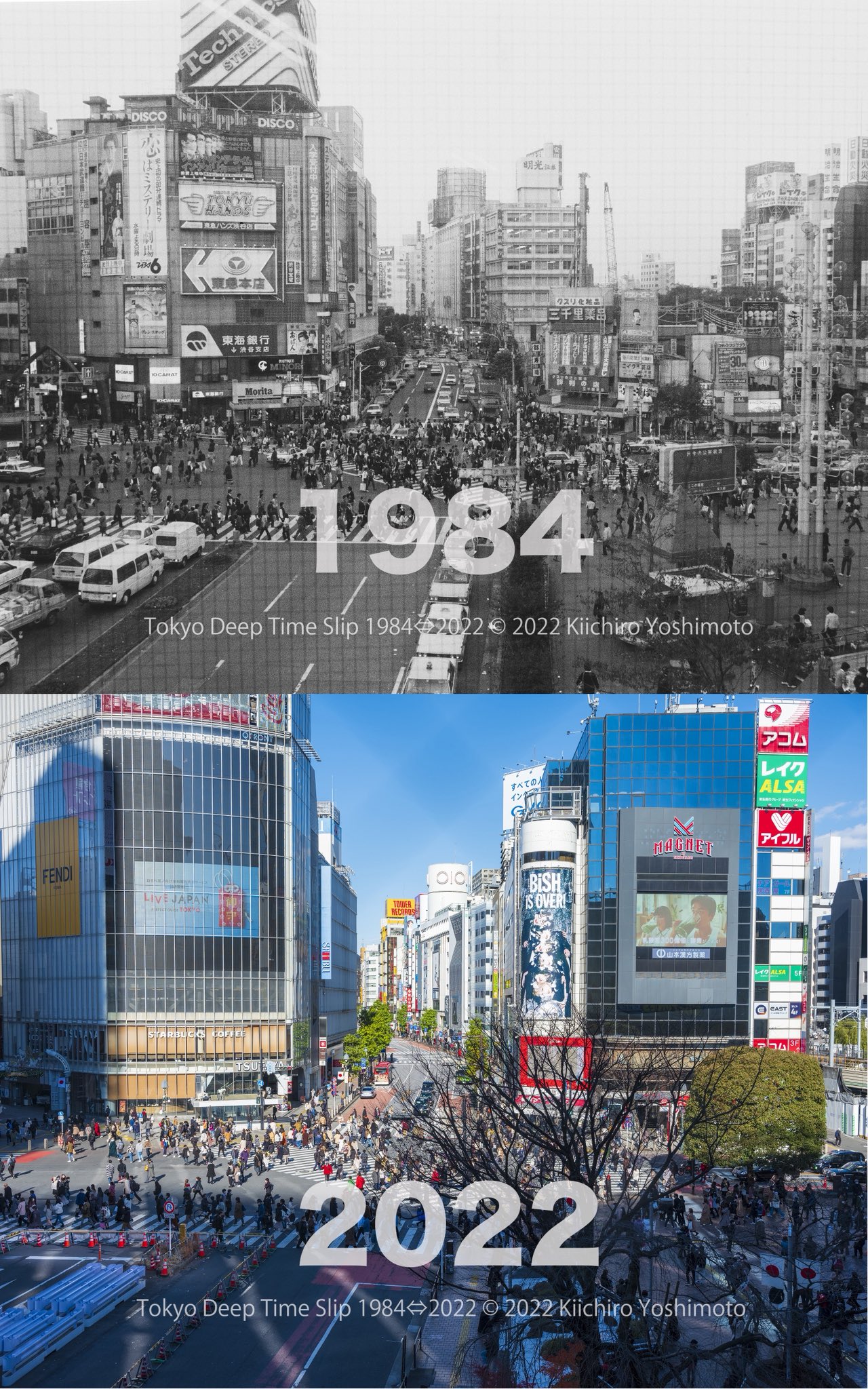 Shibuya Scramble Crossing was photographed from the same spot and the same perspective.How do you think it will look like in 2032?