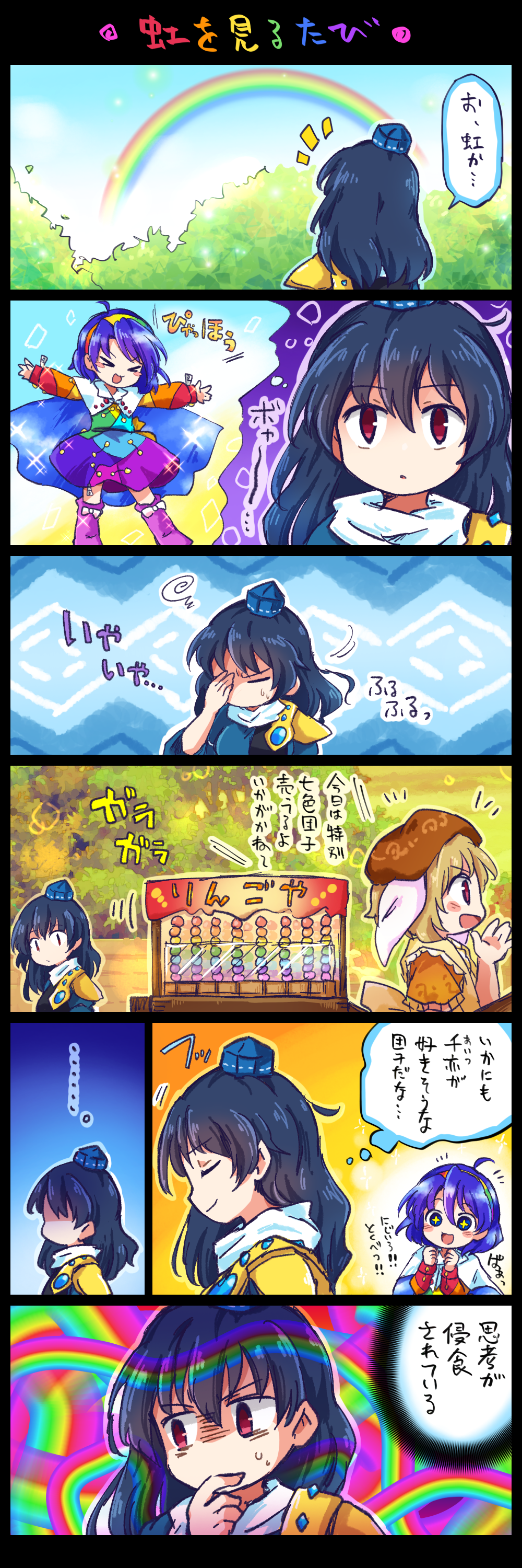 You ever notice how songs about rainbows are bittersweet, lonely, and about longing to find connections while still holding out a small shred of hope?I think that's Chimata.