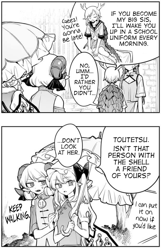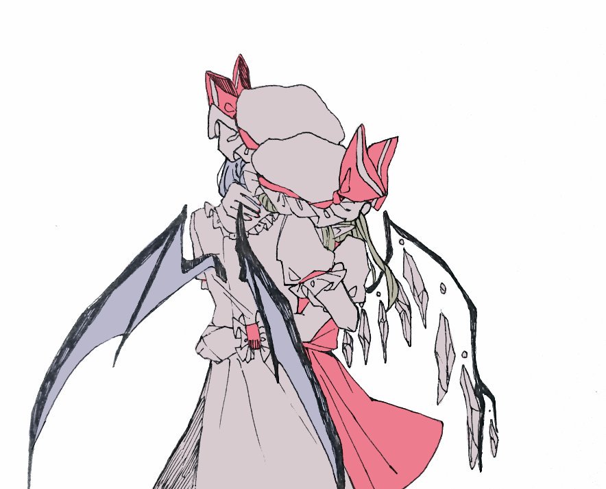 Flandre and her friend having beautiful hair and one helping the other