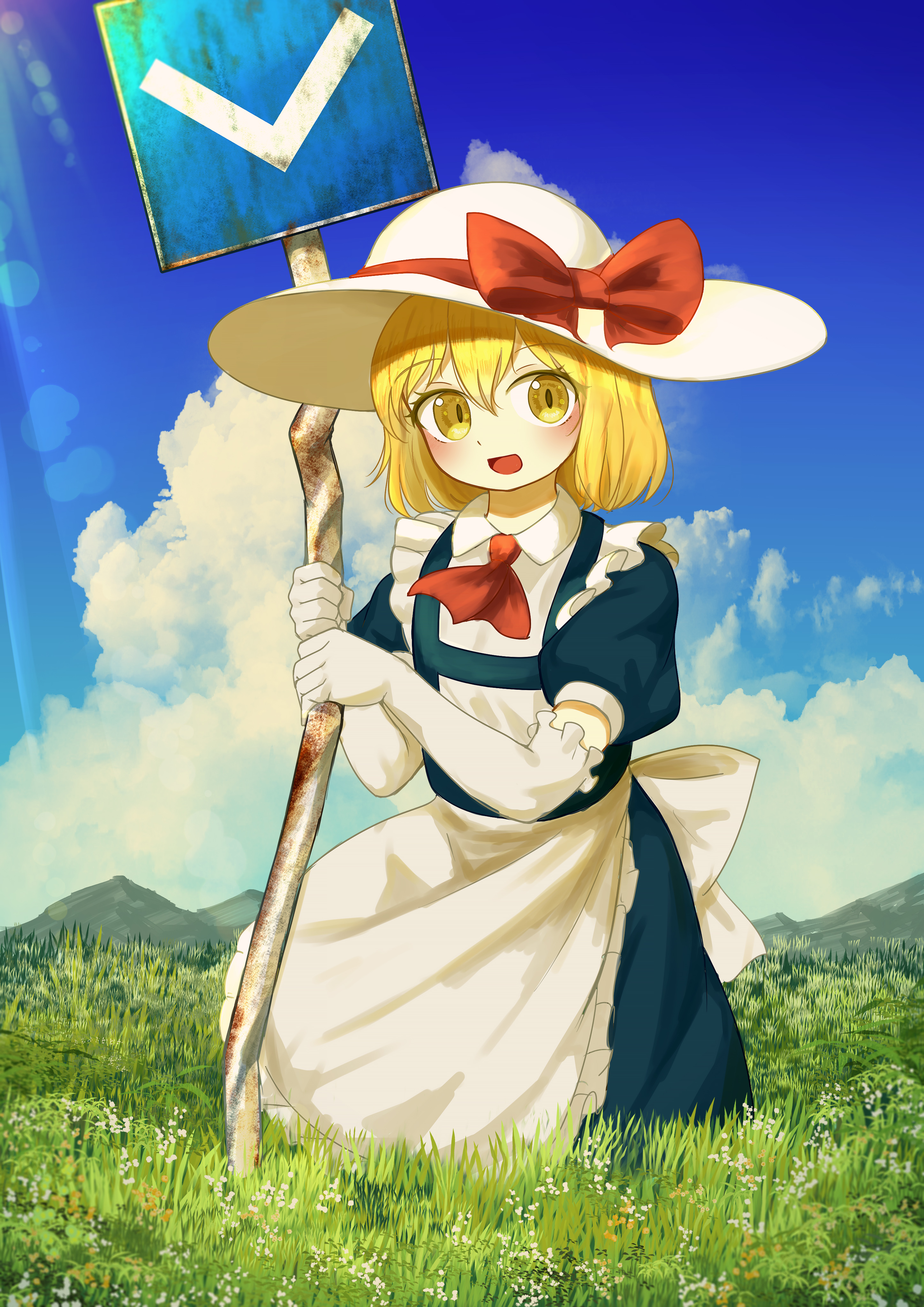 It's also pretty funny how she's drawn with a stop sign so often, but doesn't even wield it in-game. It was from ZUN's comment from his homepage. I kind of want to see the pre-PoDD illustrations of her he's mentioned drawing.