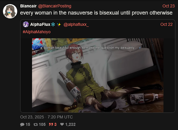 >>50149016Yeah I can see where you're coming from. Alice and Aoko don't seem all that great especially after meeting the absolute sex sex goddess that is Touko