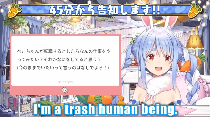 >>50160737I just don't see what's so entertaining about going on for minutes about something she doesn't actually care about. If Pekora and AZKi invited her out she would reject it and say she's "busy".