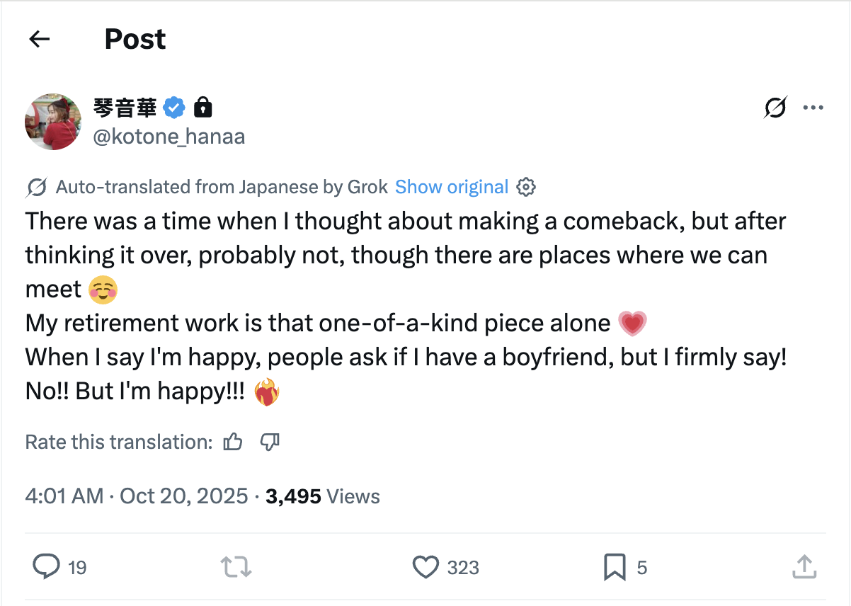 >>50181648https://x.com/akari_mitani17/status/1980245986628010254It's fkn nothing.