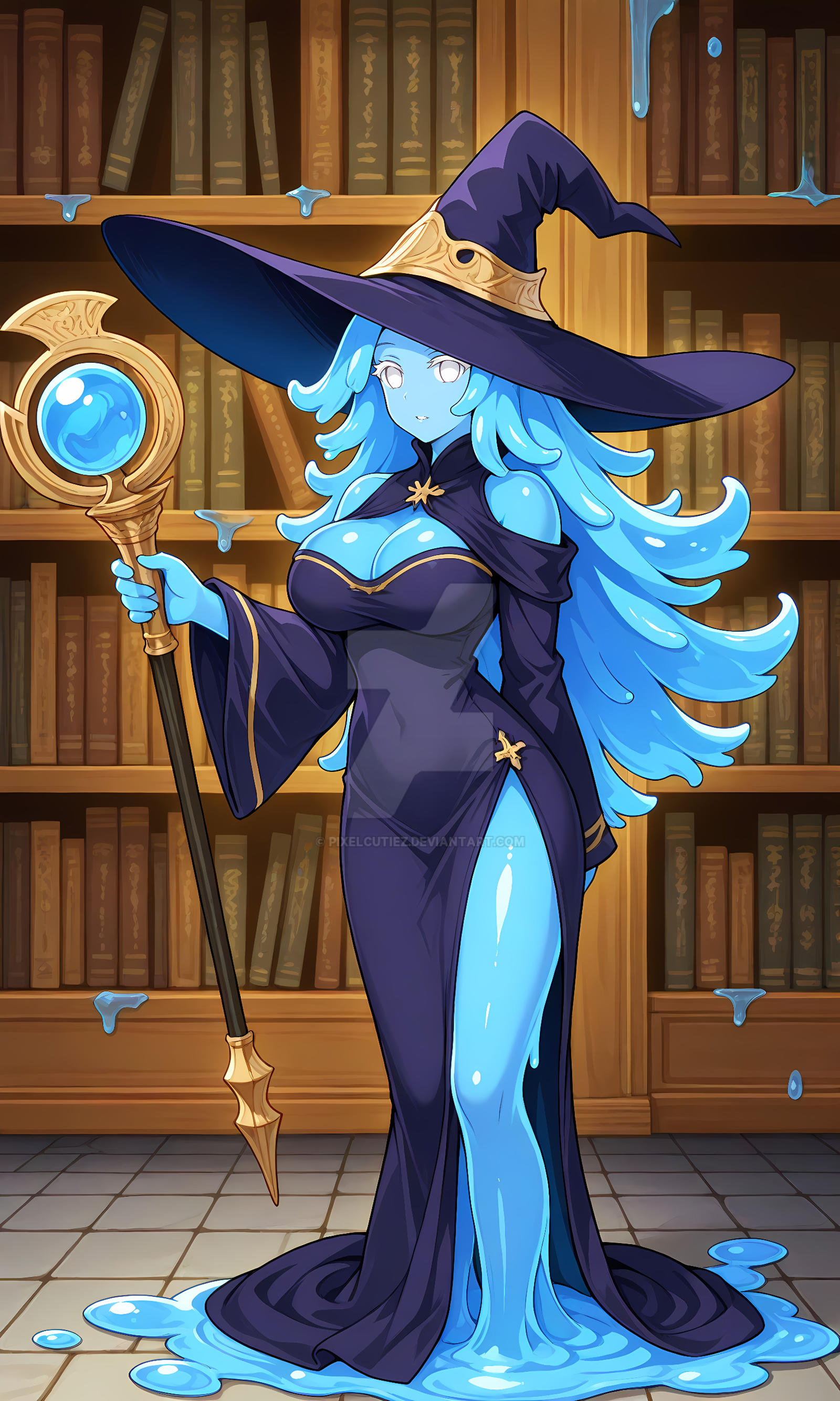 "Monster girl having a rare human son" concepts been brought up a few times, but how about a Hard Mode one? The human boy is conceived inside a Slime. She must take great care to maintain the right shape at all times for several months straight or it's over.