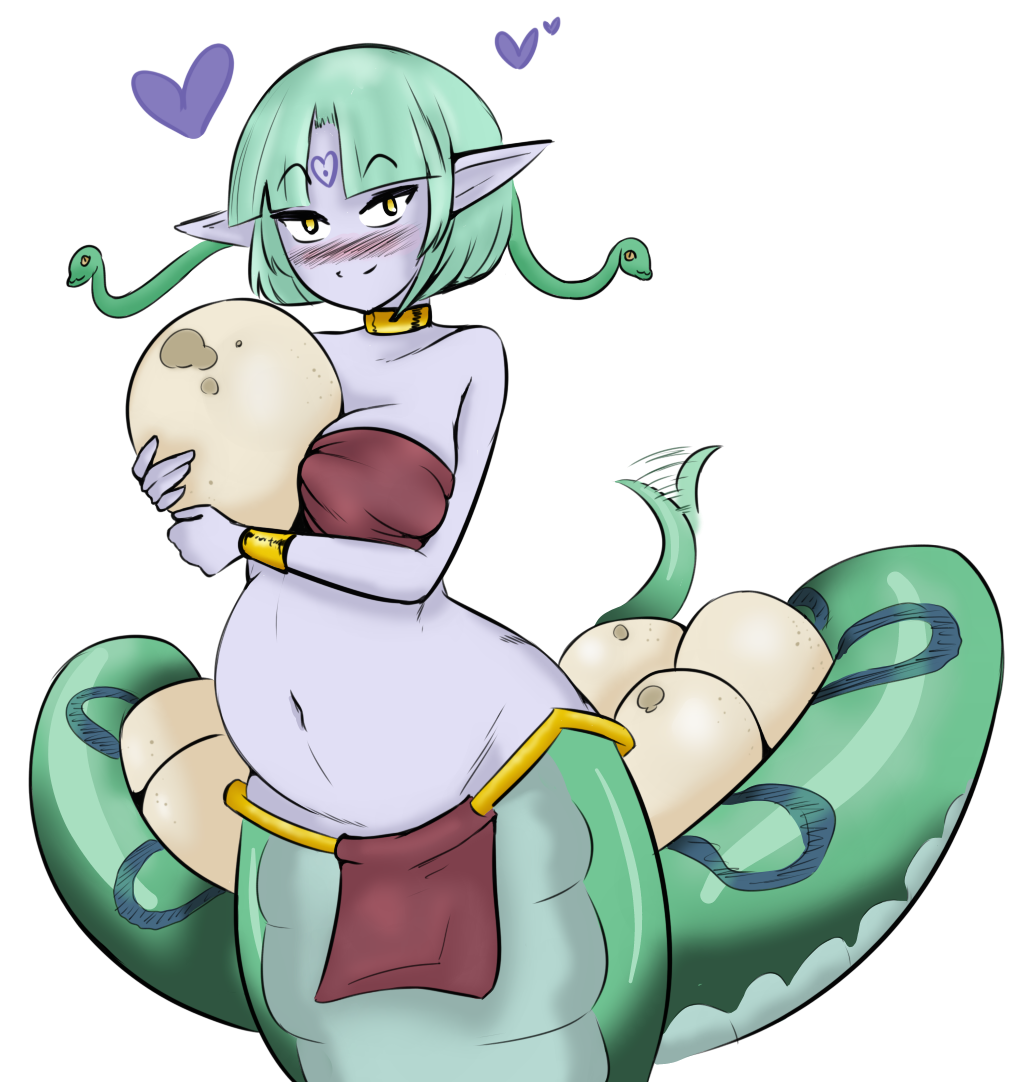 >Roast an entire hog>Take it off the spit and lay it on the table>Go to the restroom to freshen up before eating>Come back>Hog is gone>Lamia wife sitting there looking innocent>Big bulge in her tail giving her awayHope you're ready for enormous grocery bills