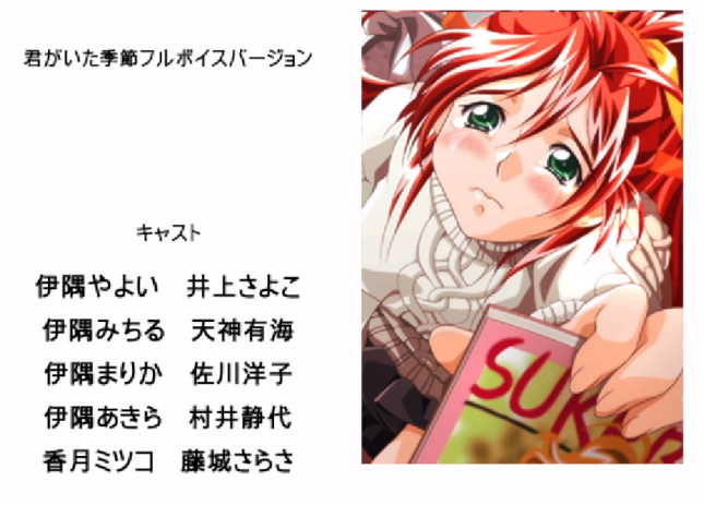 >>50189488>Anime adaptations changing the eroge VAs was the norm back when adaptations were commonplaceWhat? No. Doing that was never common.