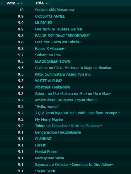 >>50182382yeah, rankings are totally made up, might as well be random, who cares about thoseBUHI~~~>>50182389i shitpost on /vn/ but i'm not mtler