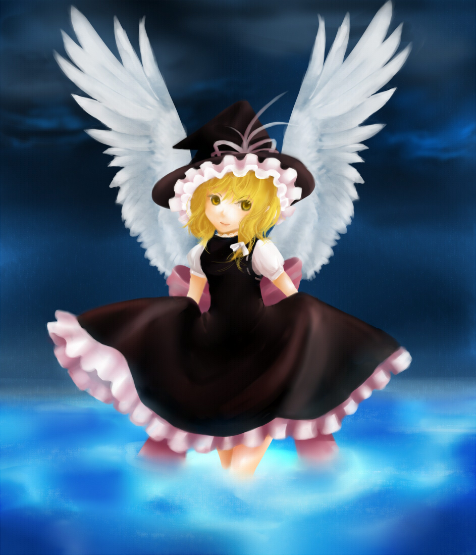 Remembering how Marisa in Seihou is seemingly no longer human as she sports a pair of angelic wings.