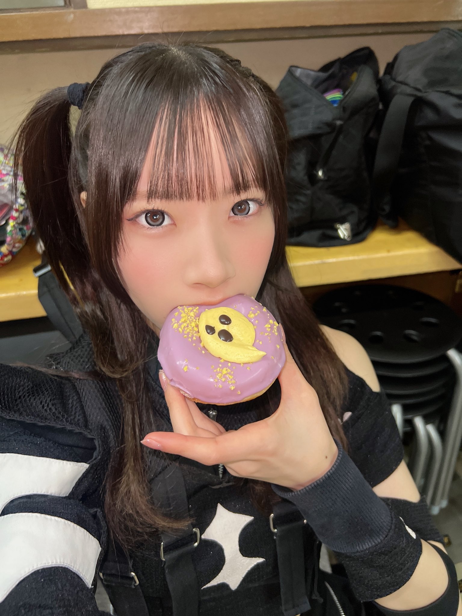 Japanese idol eating donut