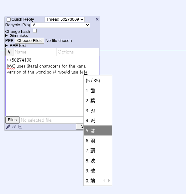 >>50274108IME uses literal characters for the kana version of the word so は would use は