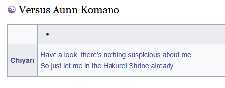 >>50287953>perhaps a trojan chupa sort of dealcanon compliant nonsense is my favourite. Chiyari tries to bug Aunn into letting her into the Hakurei Shrine in UDoALG, after all.