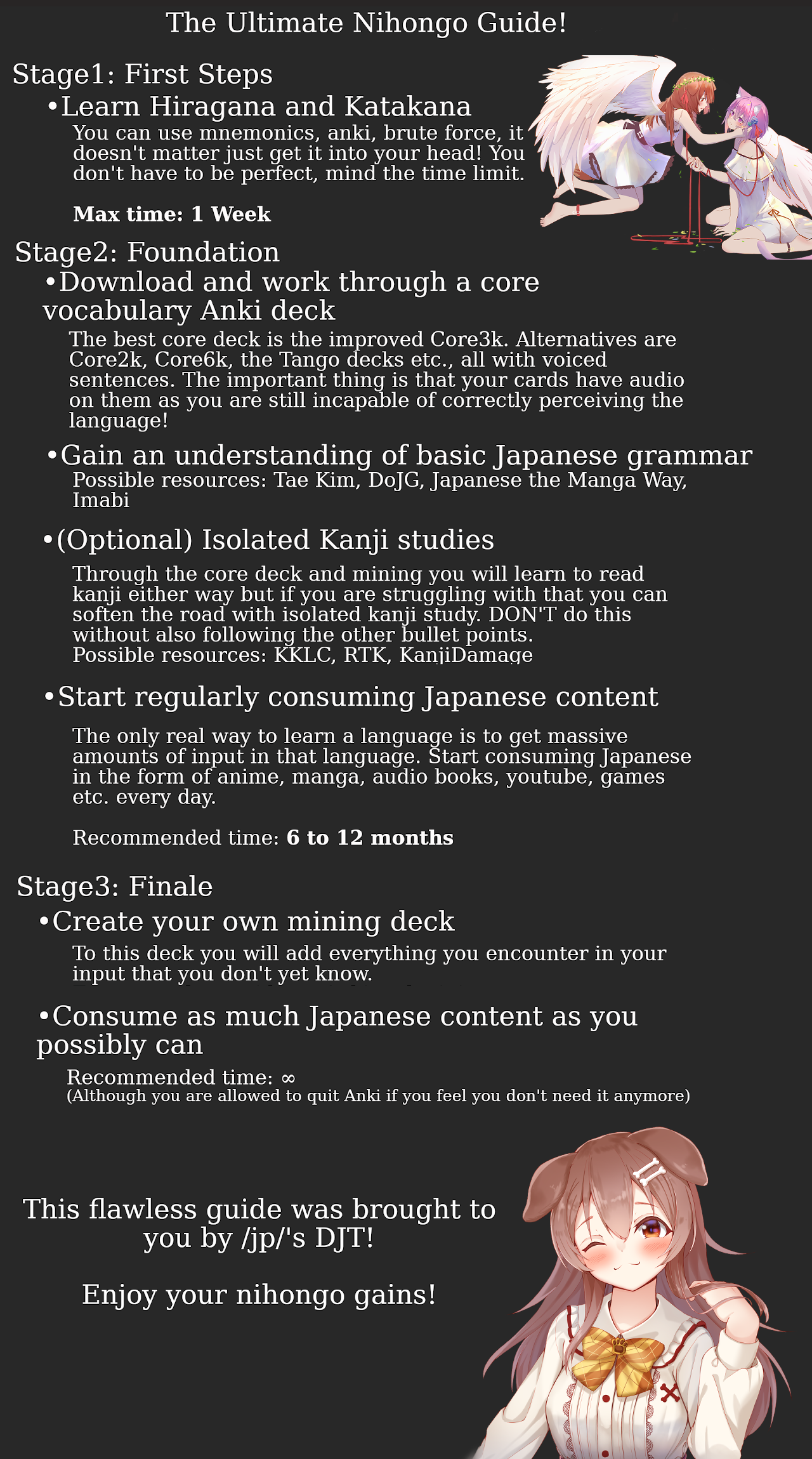 Guide: https://learnjapanese.moe/guide/Previous thread: >>50298299Etiquette: https://streamable.com/nw9lo1Do yourself a favor and never interact with tripfags.The interaction will never be fruitful.Filter and move on.