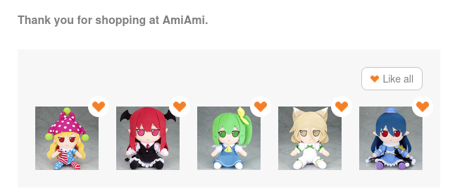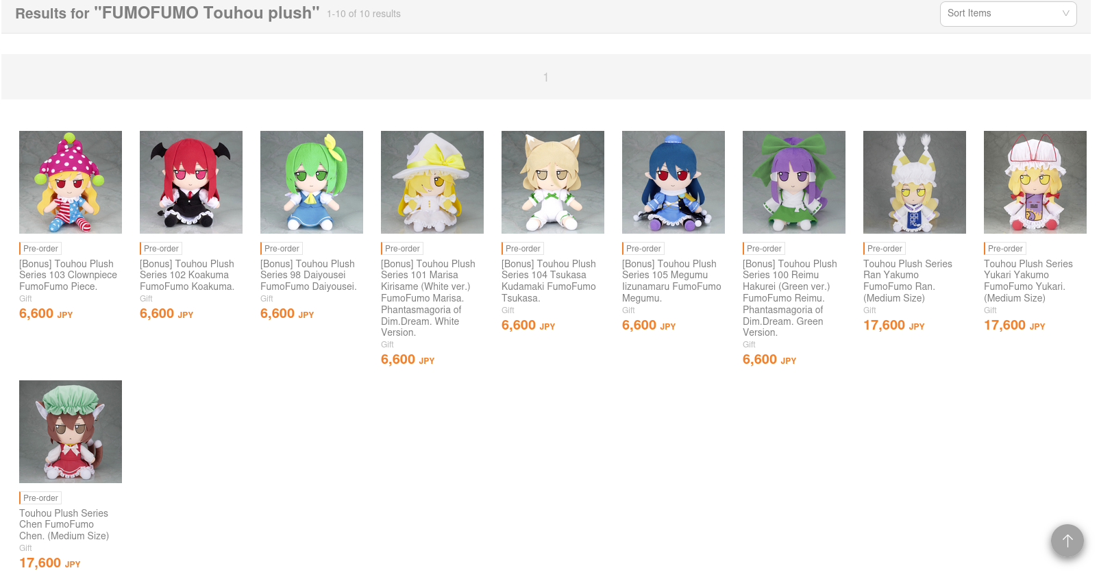 >>50322078I tried registering my email on Buyee and accidentally sent two confirmation emails, both returned errors, so I tried to send another and it gave me an error. Absolutely fantastic. I’ve bitten the bullet and preordered them on AmiAmi.So do I really have to wait until June next year or do they speed things along now and just make em as the orders come in? My understanding was they get sold only in Japan, and local resalers put em up on Buyee where you can get them shipped internationally, but because it’s resale the trade off is you’re spending more cash to get them sooner.I may be dumb, I have zero experience with how preorders work. It’s just that seeing packaged fumos on Buyee that aren’t meant to be shipped until next year threw me off.