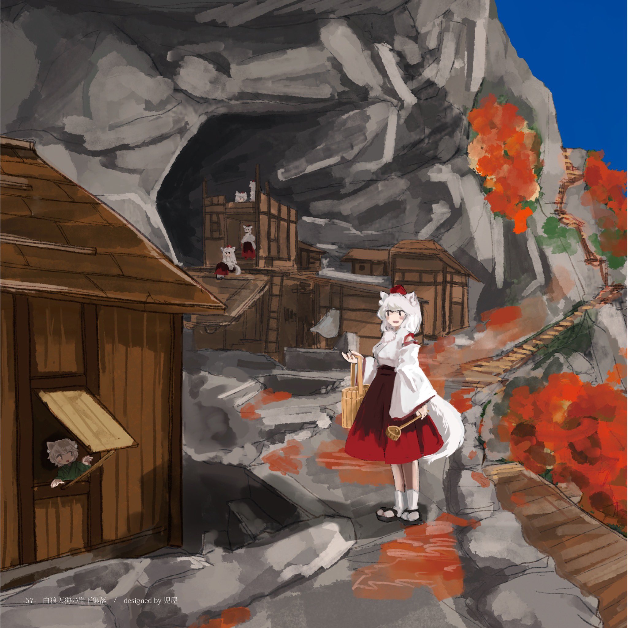 Imagine walking through the wolf tengu homes and seeing all the white fluffy hair and ears go about.