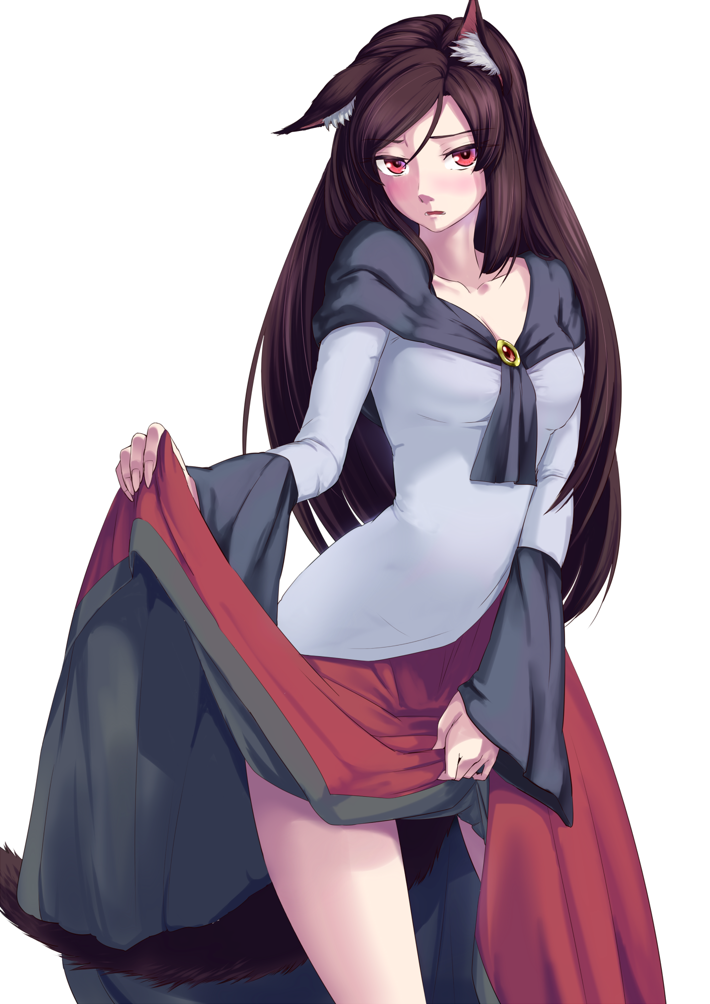 So that when she transforms during a full moon, she doesn’t accidentally rip them. It also helps for ventilation. Any and all other consequences of her loose fitting and “perverse” clothing are purely coincidental. It was never her goal to show that much cleavage as means of enticing human men. No, no. Not at all.