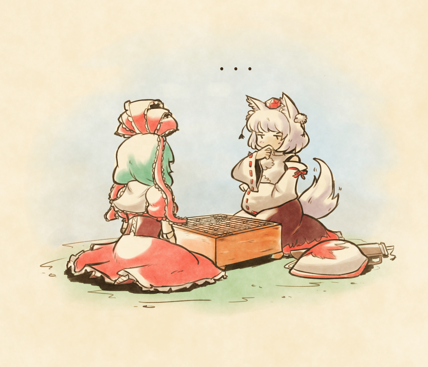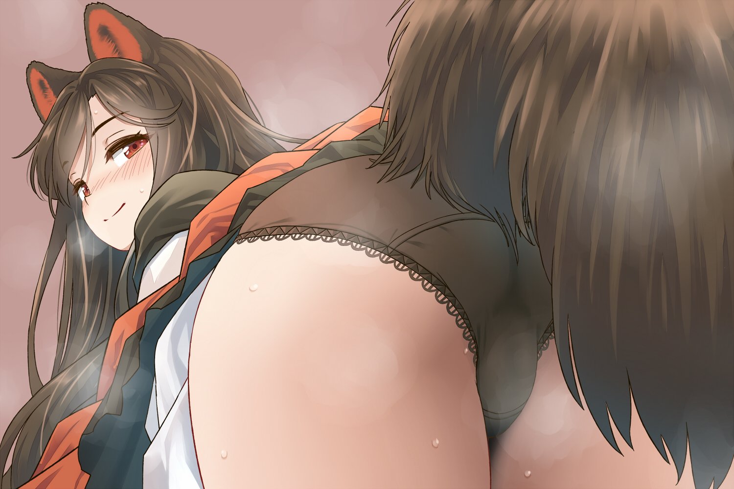 Kagerou fanning herself on a particularly hot summer day. Kagerou pulling her gown down a little lower so that her chest can breathe easier. Kagerou not realizing you’re staring a hole in to her cleavage while attempting to remain calm. Kagerou’s face flushing as she lets out another exasperated huff before no longer being able to handle the heat and pulling her outfit the rest of the way down. Kagerou finally remembering your presence and slowly turning to face you whilst you stare at her large and sweaty breasts, the blood rushing to your crotch compounding with the heat making you go light heated. Kagerou panicking and attempting to help while one of her breasts is firmly pressed against your face as you slowly slip in to unconsciousness.