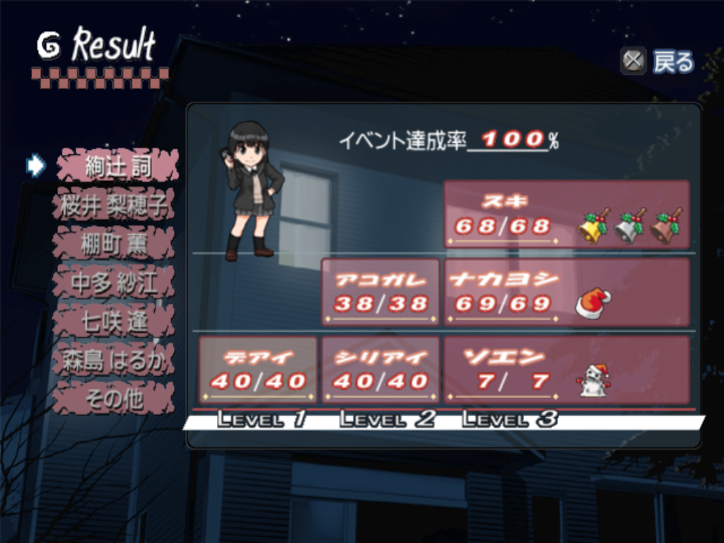 >>50366945I 100%'ed Ayatsuji's route in Amagami yesterday. It took about 30 hours to get the last ~20%. Ayatsuji is such an interesting girl that I didn't mind doing it, but this game has way too many petty events that you have to restart from zero to get. Getting the bad ending, though, was crushing, even though I feel like it's necessary to see it to understand her character completely. Ironically, it also seems to be the only "bad" end that actually punishes the MC (and more so the girl). I don't know how long it would take to 100% the whole game, but I think it would easily take 300+ total hours.I'm also a few hours into Kiminozo since anon helped me find a version that doesn't crash, so I think I'll focus on it now.
