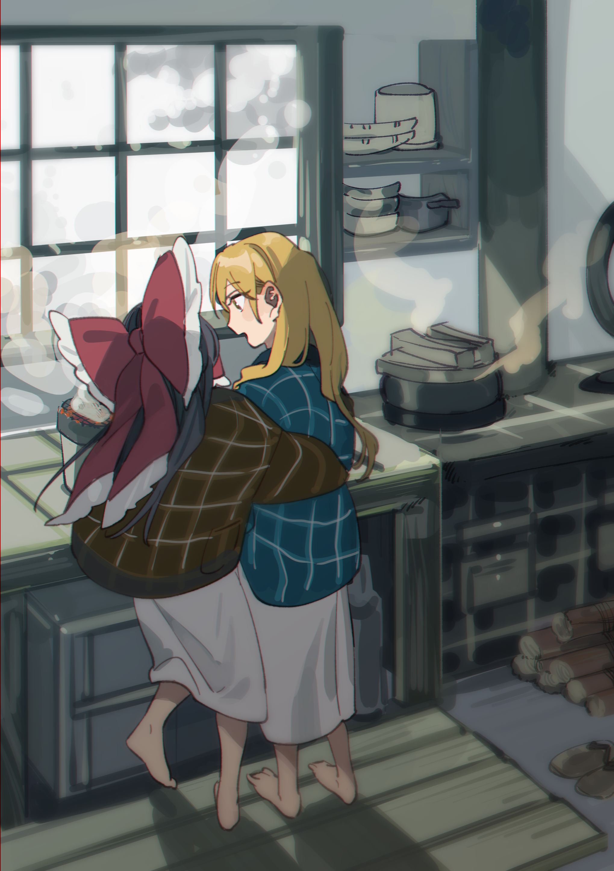Marisa prodding Reimu asking why she doesn't have a baby of her own