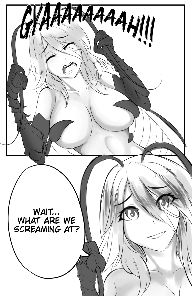>>50451486>Head maid's antennae the twitchiest as she says "Oh, Master. We must be most hospitable to this sweet girl. It's your duty as head of the household to be a gracious host.">Her hand brushes yours as she serves the refreshments.>A small deadpan gasp sounds from the youngest mantis maid.
