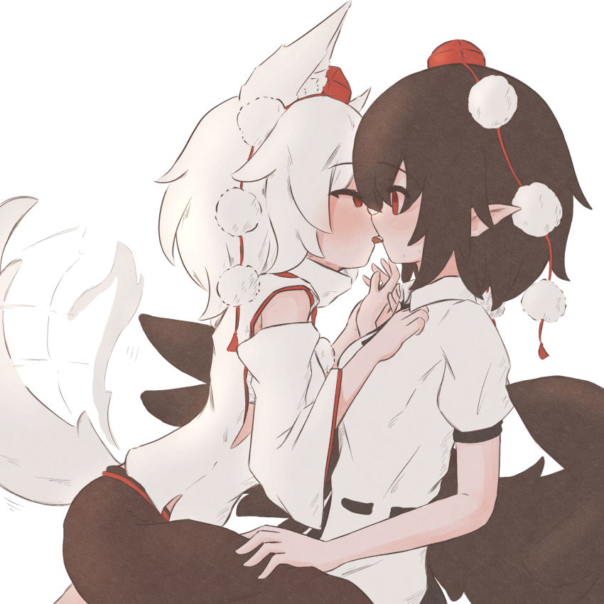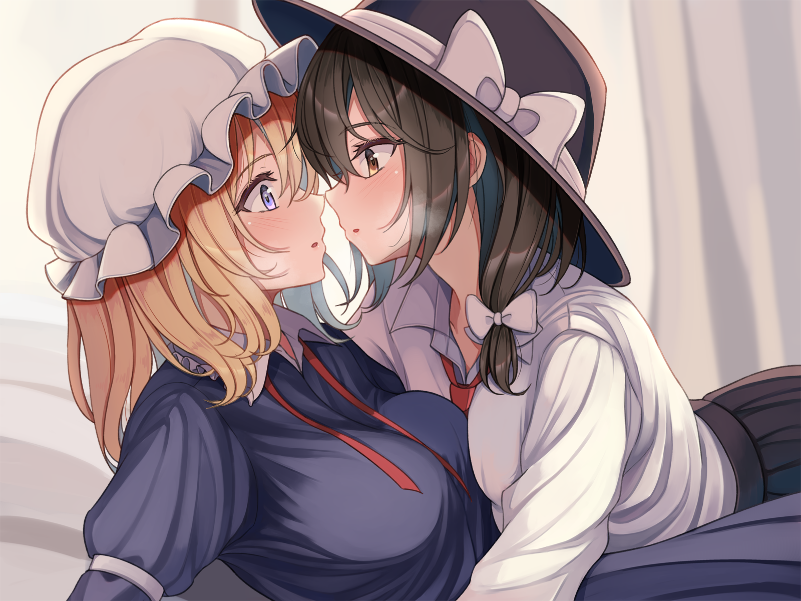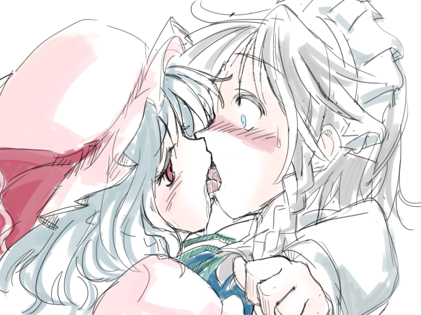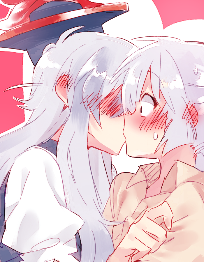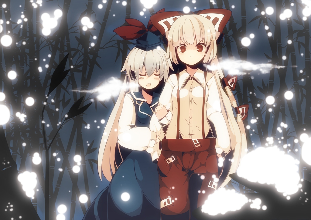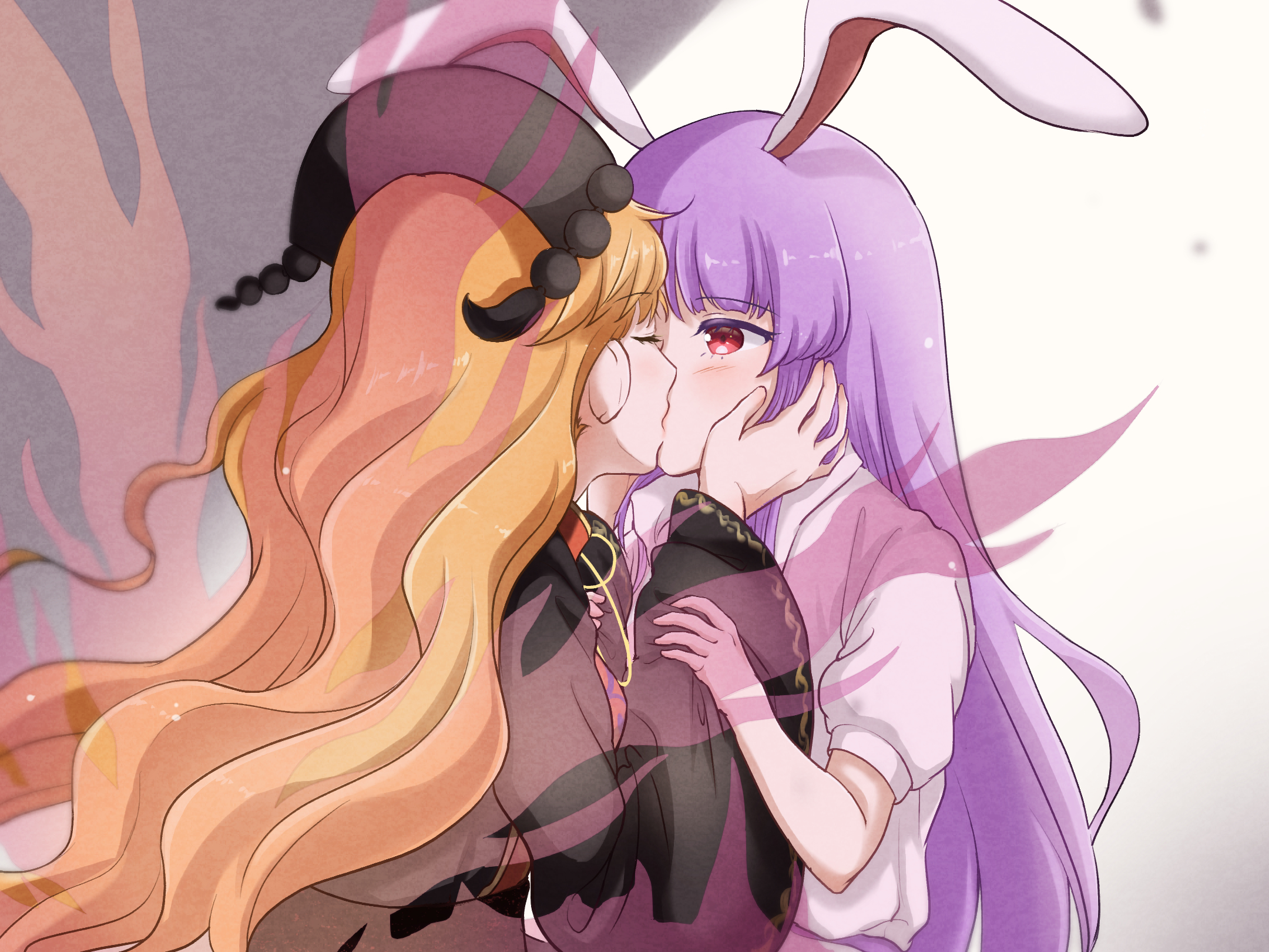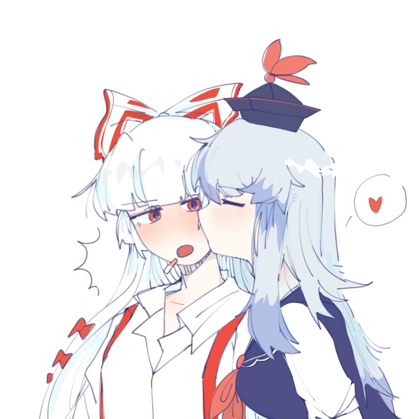 Mokou seems disarmed by the sudden kiss. What a brat.
