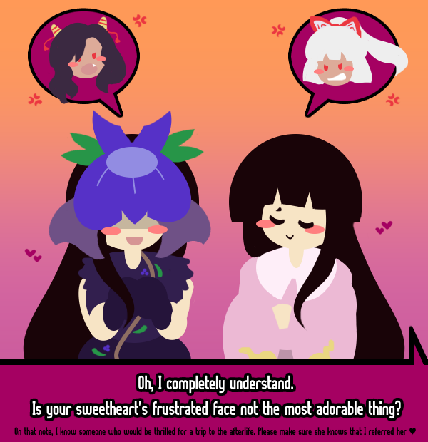 im SO GLAD that renko and maribel are a thing because it completely disproves all the bitter dudes who are like "hurrrr theres no lesbians in touhou" because no there are. i am SO GLAD these 2 silly lesbians exist. cute