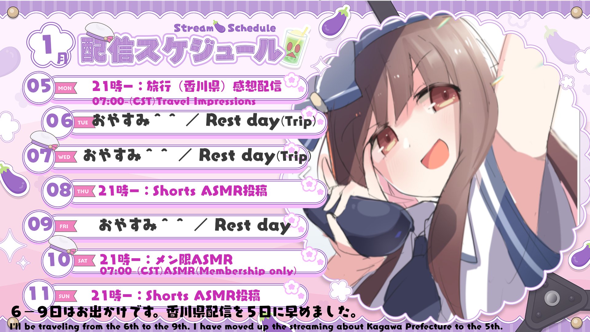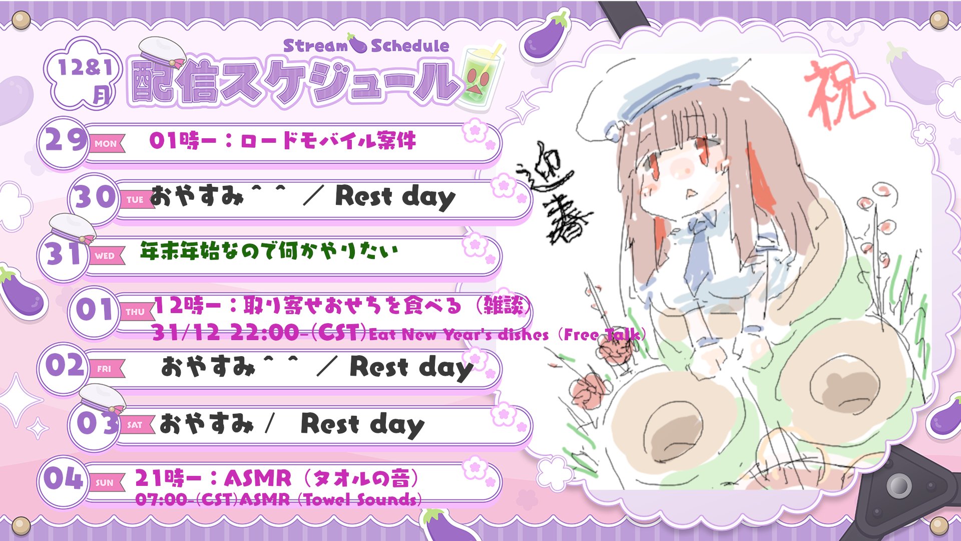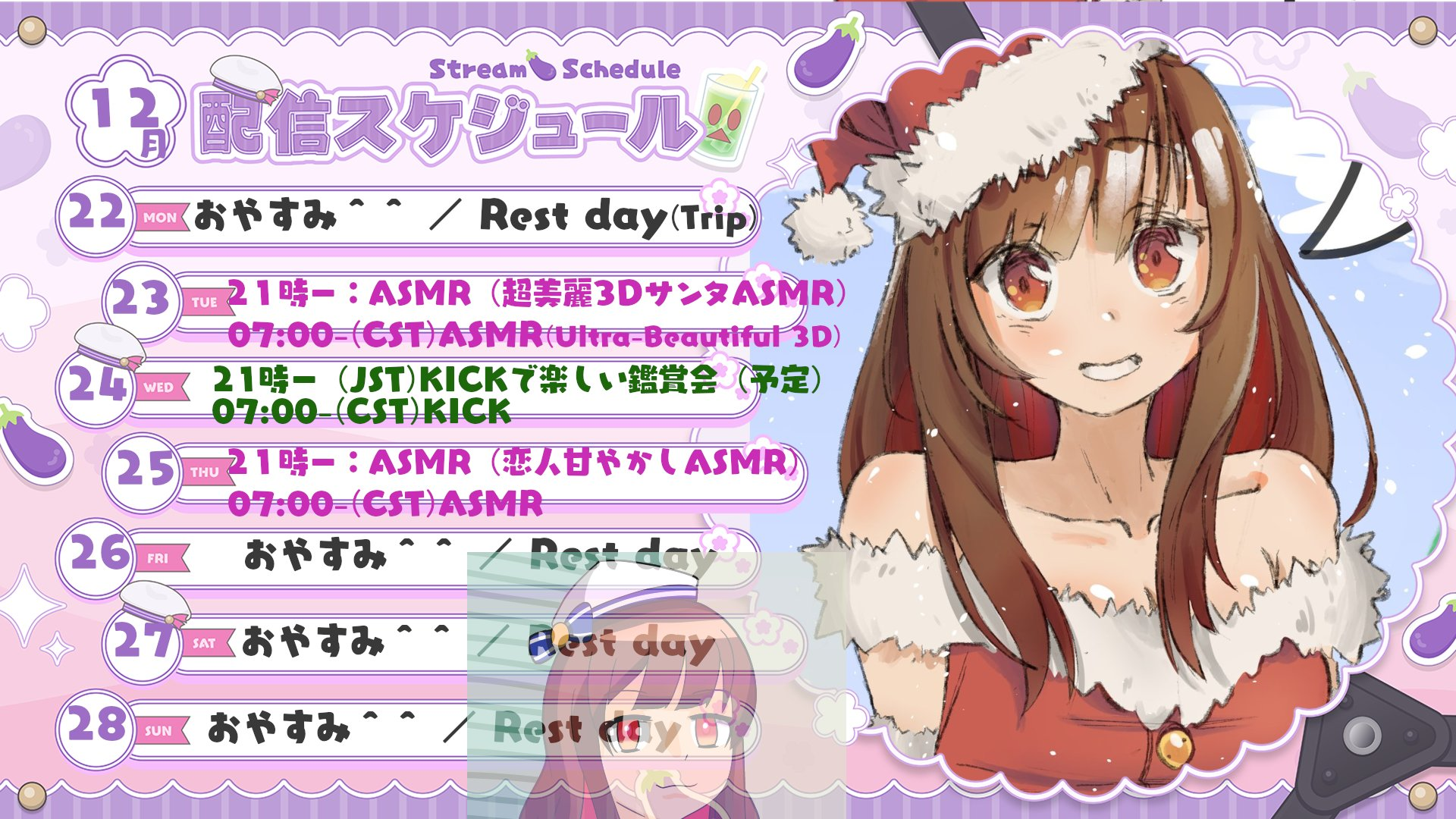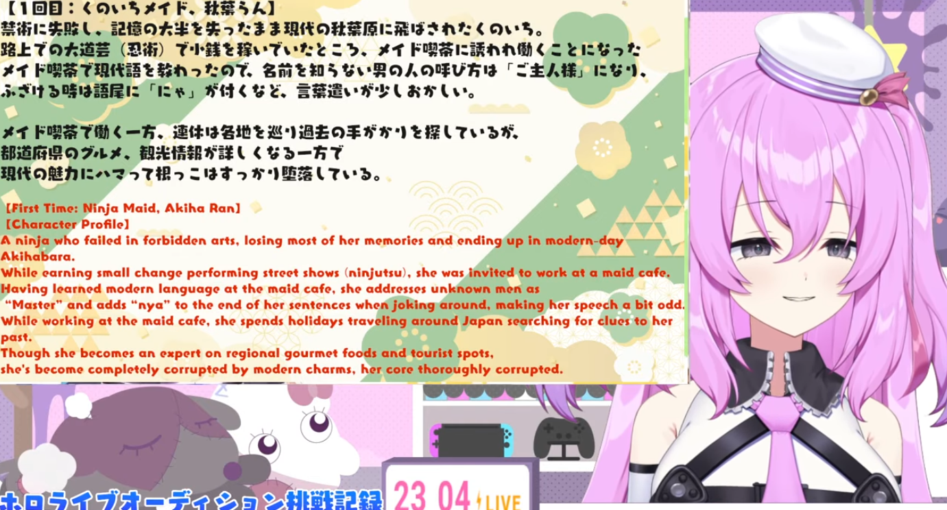 Her stream is scheduled for 11PM JST, so I guess she will go into the New Year leaving her audition videos behind. It's kind of sad though, if you think about it.