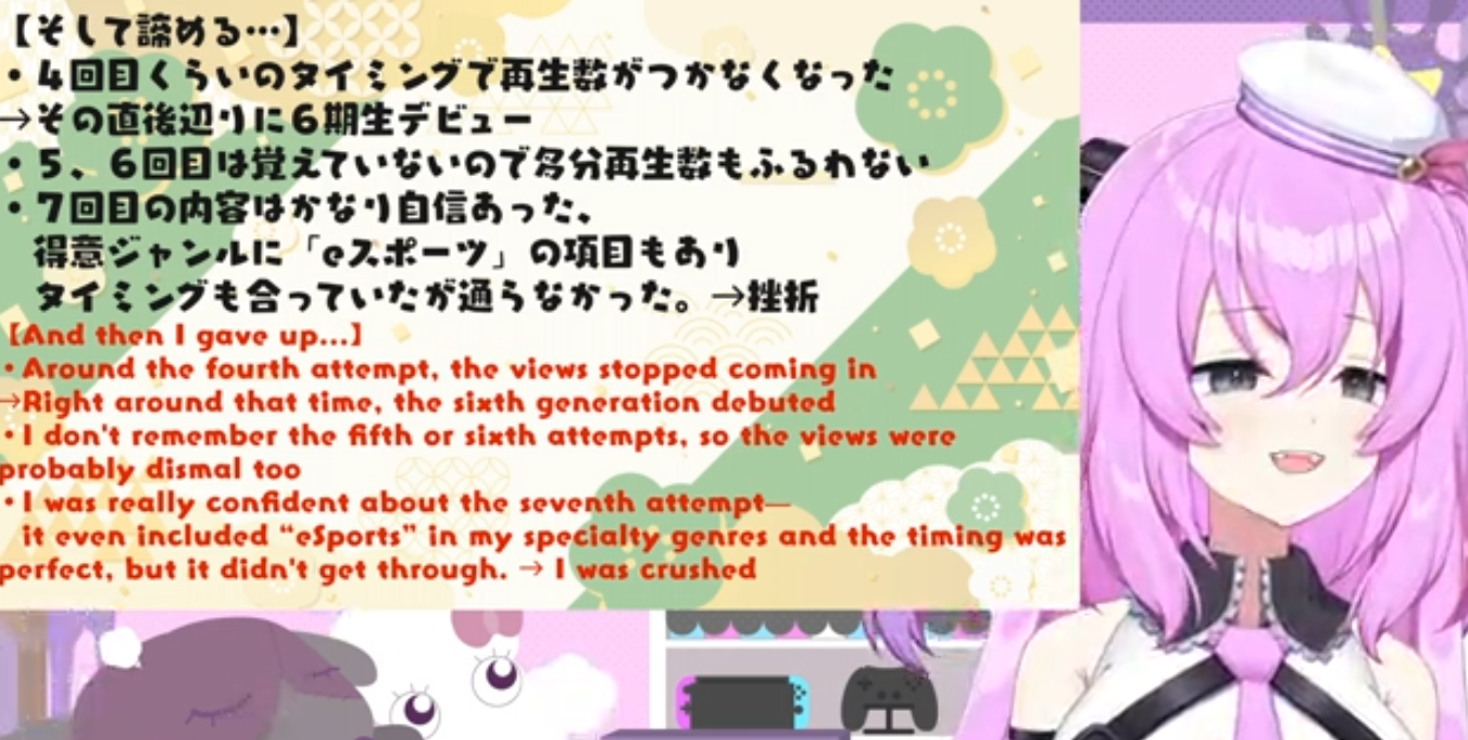 Her auditions got better, but Hololives standards got higher.