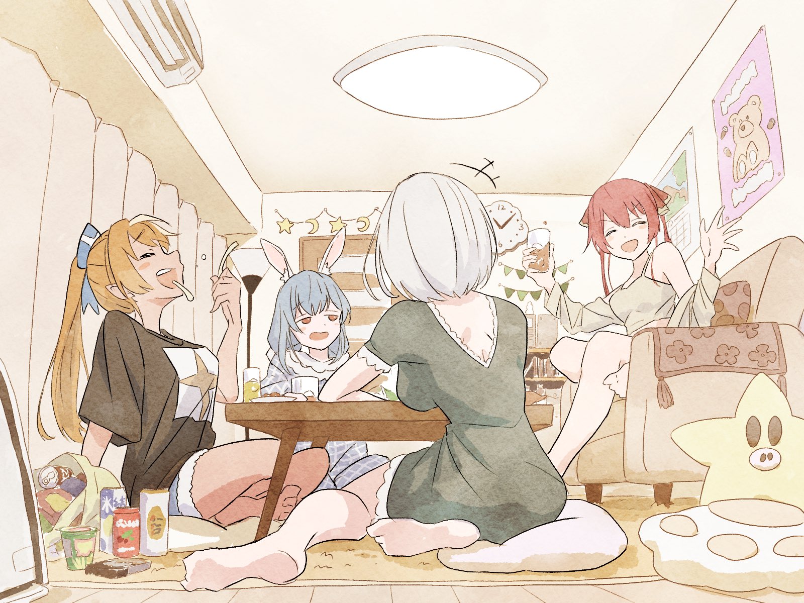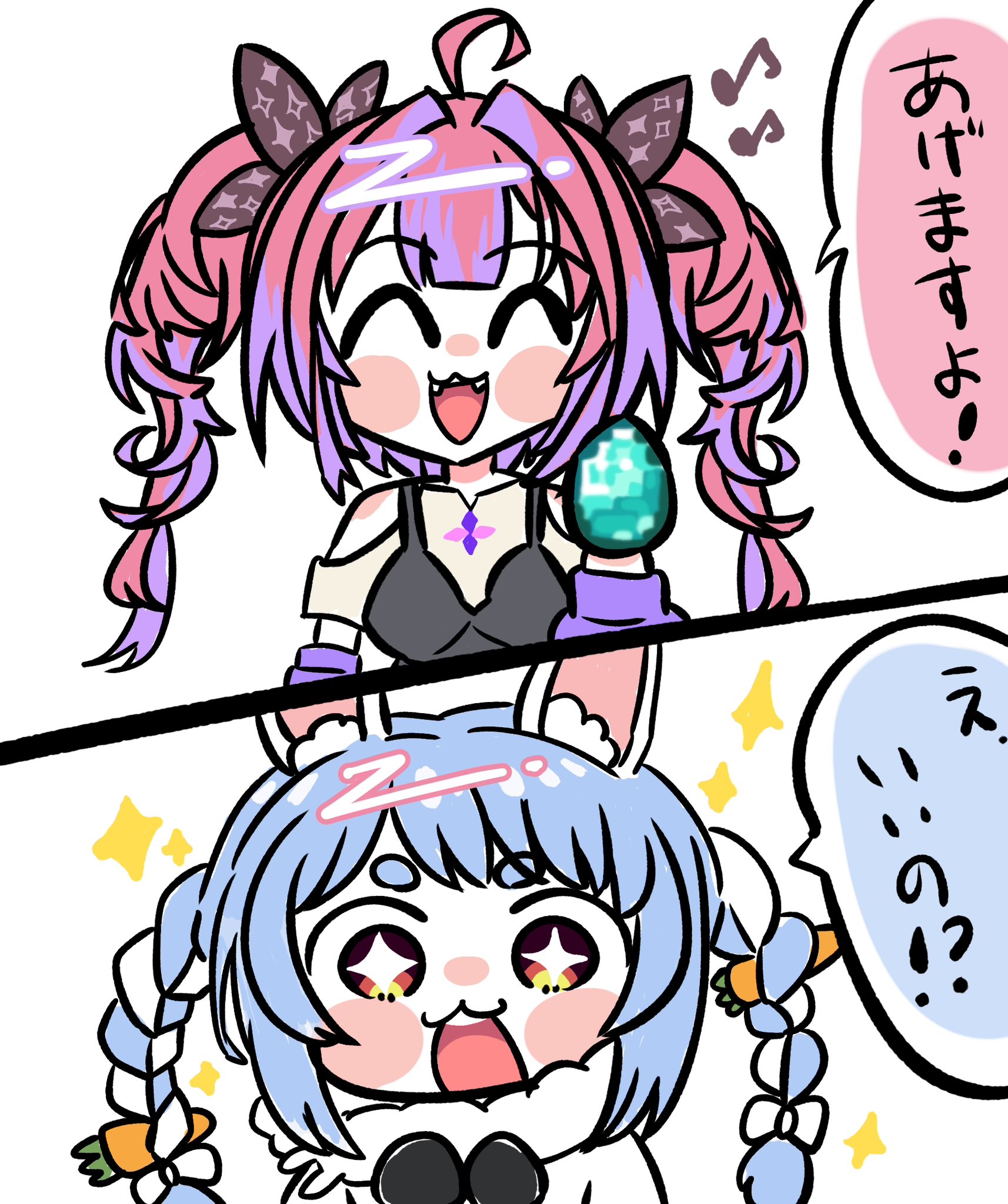 Nenechi wants to sleep over at Pekora's house...Su and Vivi are still there wanting the disney and food date prizes with Pekora