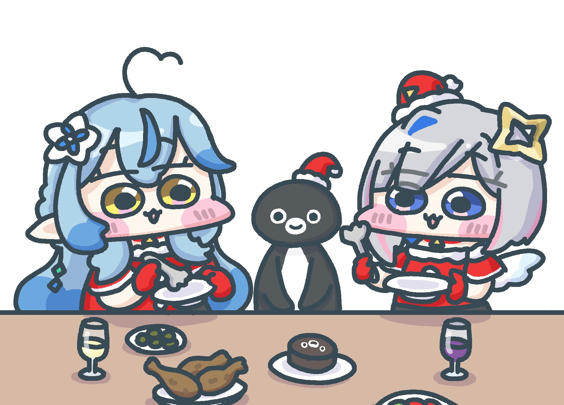 This is Vivi and Suu's first christmas party.. Pekora is glad she can talk to them and they're the same type...both suu and vivi have mengens after this