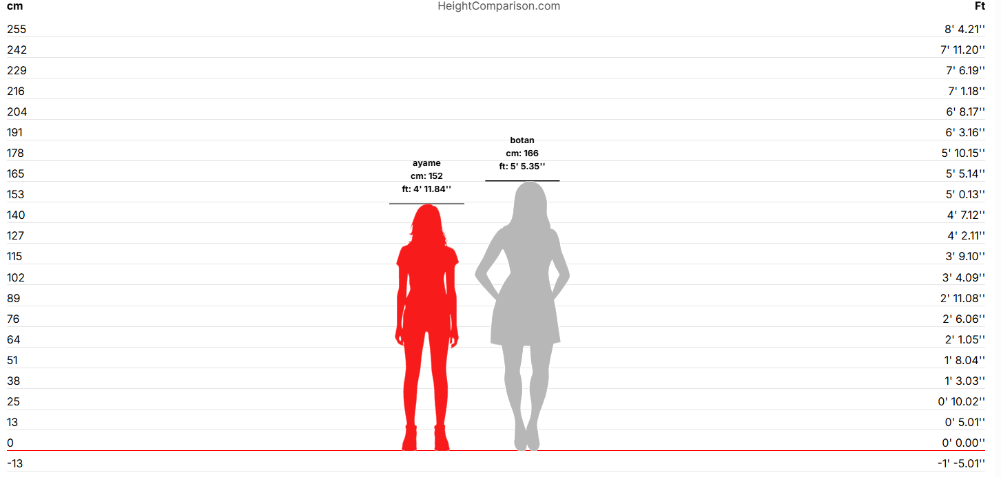 >>50494240I feel like the models' scales are fucked up. Ojou's 152 cm and Botan's 166, Just eyeballing it, this doesn't look like a 14 cm difference.