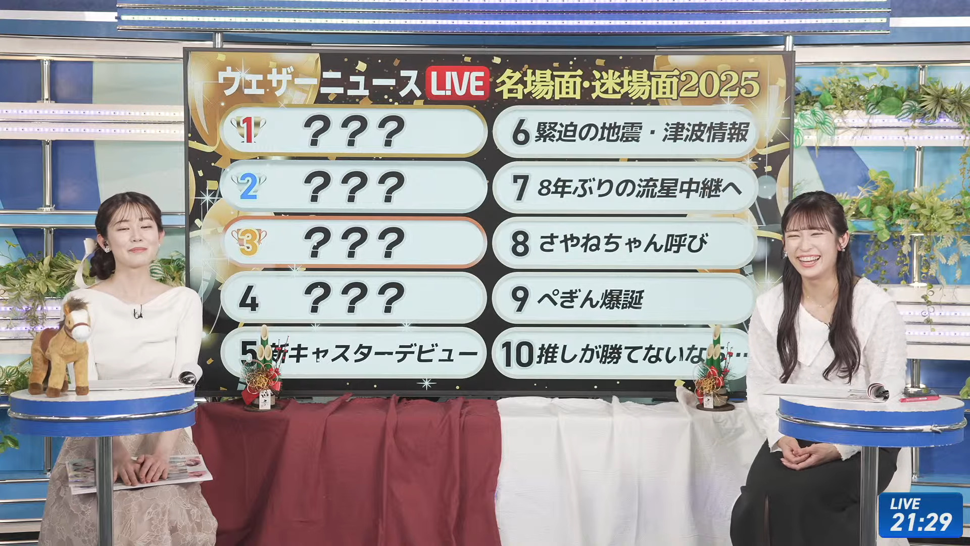 What caster will host the first Morning of 2026? I bet on Mayumayu but the young male caster is also a strong candidate. Hopefully Mayu will wear a miniskirt and very tall high heels.