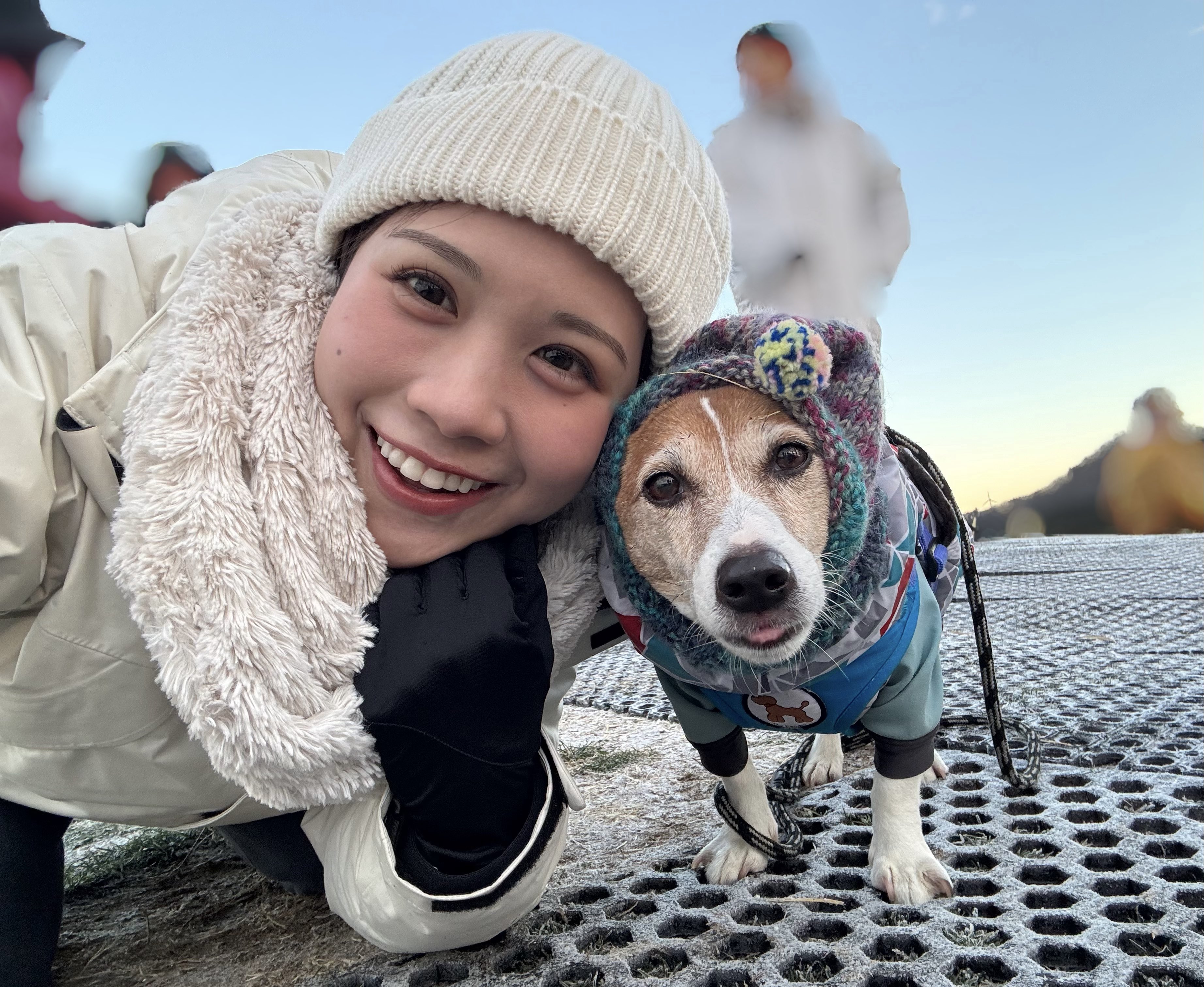momo sitting on the floor on new year's day