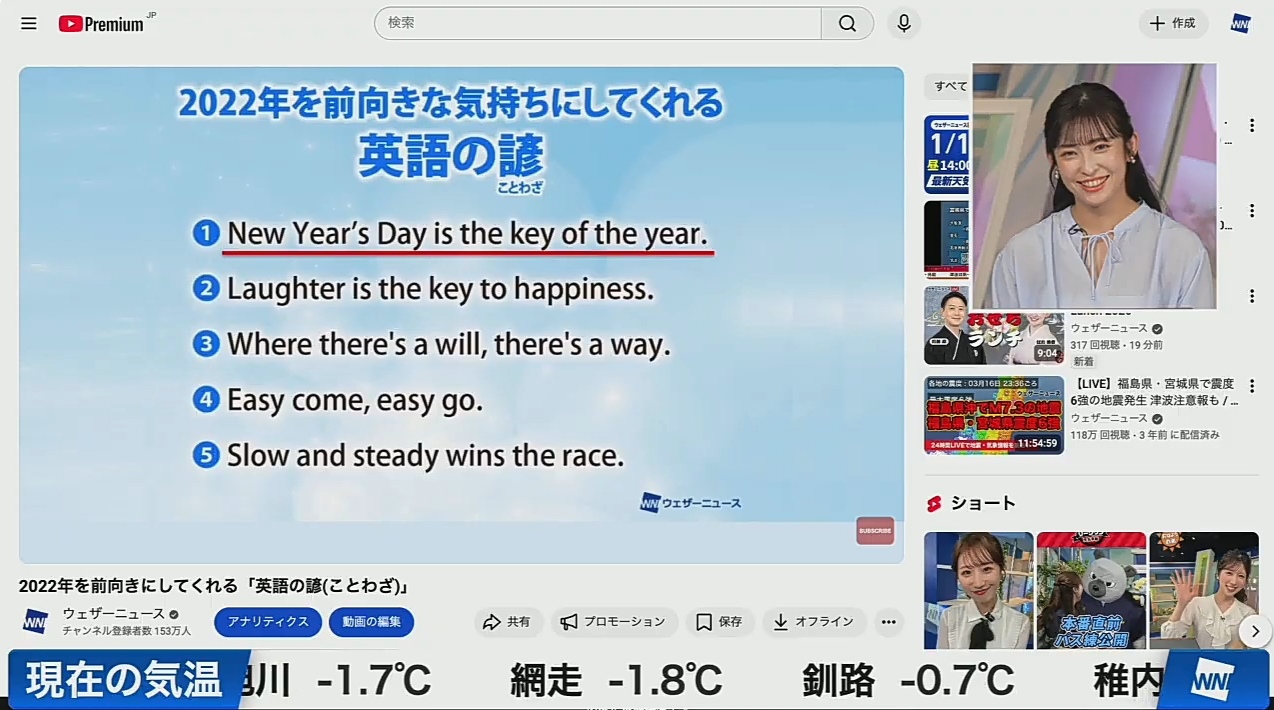 Interesting and wholesome behind-the-scenes of a WNI caster's day with Yui.Recommended to all those who think they only work 3 hours a day so their job is "easy." https://www.youtube.com/watch?v=4NioRyQyi3E