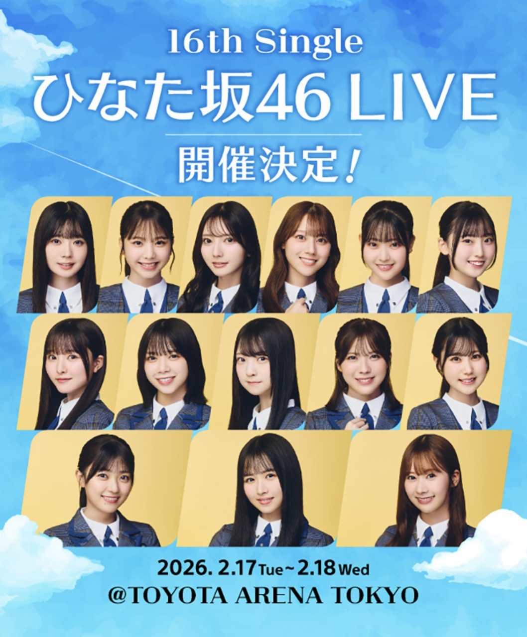 This thread is for the discussion of Nogizaka46, Hinatazaka46, Sakurazaka46, BokuAo, Yoshimotozaka46 (on hiatus), and topics relating to them and their members.>News(12/28) BOKUAO Seishun Osame 2025 Live @ TACHIKAWA STAGE GARDEN (Tokyo)(01/09) Kosaka Nao stars in WOWOW drama, "Strobe Edge Season 2"(01/20) Matsuda Rina's 1st Photobook(01/23-5,29-1) Yangihori Karen stars in Code Geass: Lelouch of the Rebellion Musical @ COOL JAPAN PARK OSAKA TT Hall(01/24) FUKUOKA MUSIC FES. 2026 (Sakurazaka46)(12/24–25) Iwamoto Riko on TBS SASUKE 43rd Tournament(01/25) LAWSON 50th Anniversary presents Special LIVE Hinatazaka46 / Sakurazaka46(01/28) Hinatazaka46 16th Single "Cliffhanger", Ono Manami Center(02/17-18) Hinata Hiragana 16th Single Live @ TOYOTA ARENA TOKYO(01/29) Konoka Matsuda graduation concert @ TOYOTA ARENA TOKYO(01/30) SAKURAZAKA46 SPORTS FESTIVAL supported by AEON CARD(01/2026) Inoue Nagi stars in TV Taiga drama, "Toyotomi Kyoudai"(01/2026) Okamoto Hina cast member in Stage play, "Birth of Kitaro: The Mystery of GeGeGe"(02/03) Umezawa Minami 2nd Photobook(02/2026) Kubo Shiori cast member in Movie, "Hodonaku, Owakare desu"(02-03/2026) Okuda Iroha cast member in Musical, "Lady Bess"(02/27) Kanazawa Ami 1st Photobook(04/04-05) 7th Hinatansai Festival(04/11) Sakurazaka46 5th YEAR ANNIVERSARY LIVE @ MUFG Stadium (Japan's National Stadium)>LinksUpcoming Sakamichi TV appearances: https://pastebin.com/c8tMgEmh48/46 Group subs masterlist: https://docs.google.com/spreadsheets/d/1B1HFVF5iQBgvjDrPnmwfbq0Iz6VvaOmDep0C2x8yoMoSakamichi subbed content: Nogizaka46: https://nogiarea.weebly.com/ | Hinatazaka46/Sakurazaka46: http://keyavids.com/ | BokuAo: https://subs.j-idols.net/subtitles/BOKUAO/48/46 Group live shows: https://docs.google.com/document/d/1JnKp_AEeGUNTNePfY3C3AO4veiVi7frza82lRo44ejQSakamichi H/S: https://senublog.com/?s=完売表 | https://ameblo.jp/seto-kasumi (no longer updated)Nogizaka46: https://www.nogizaka46.com/Hinatazaka46: https://www.hinatazaka46.com/BokuAo:https://bokuao.com/Sakurazaka46: https://sakurazaka46.com/Yoshimotozaka46: http://yoshimotozaka46.com/>Showroomhttps://www.showroom-live.com/campaign/nogizaka46_srhttps://www.showroom-live.com/campaign/hinatazaka46_srhttps://www.showroom-live.com/r/BOKUAOofficialhttps://www.showroom-live.com/campaign/sakurazaka46_srhttps://www.showroom-live.com/campaign/yoshimotozaka46Previous Thread: >>50501766