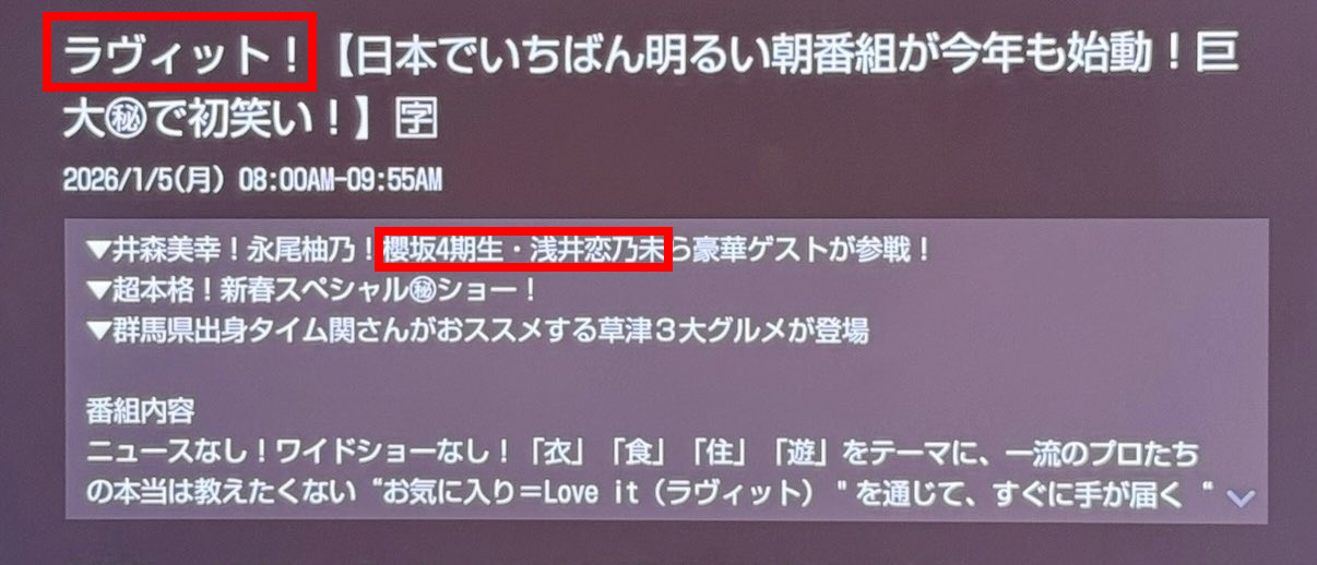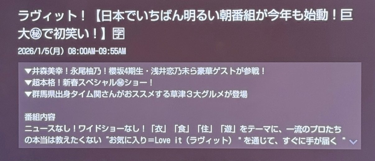 >>50506620Yeahhttps://tvguide.myjcom.jp/detail/?channelType=2&serviceCode=1048_32739&eventId=39188&programDate=20260105
