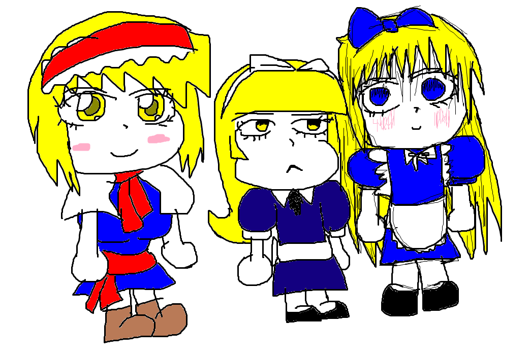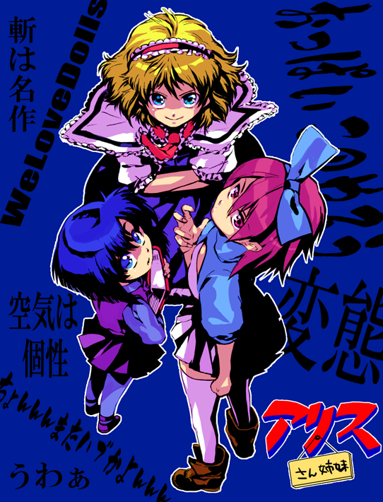 We have regular threads for the Margatroid branch, but I don't remember the last time I saw a thread only for the prototypical blondie staple of otaku culture!Alice is unthinkable levels of important to the formation of the otaku identity, being another humungous western influence in occupied Japan that wasn't just Tezuka. She's no doubt responsible for countless artists having a fixation, be it sexual or platonic, on blonde lolis, making both their own versions of her and original characters (like Roll) to permeate her DNA throughout the fabric of Japanse pop culture even further.There's so many Alices and girls based on them that you're sure to be fond of at least one, and I love several! Both Alice Margatroids are very dear to me, as is Alice-chan to a lesser extent and I'm also very fond of Tomoki Tomonori's rendition. Non-lolicons welcome but not realistically expected.