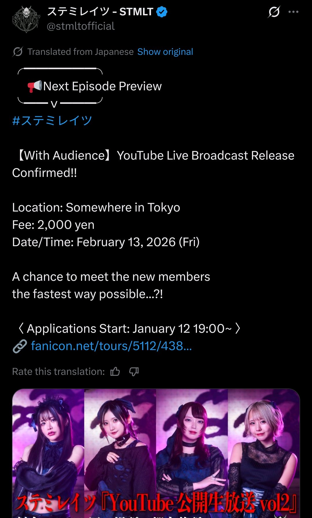 >>50574002I should have added it was held at Robin Club 表参道, which appears to be a dinner theater type of place.