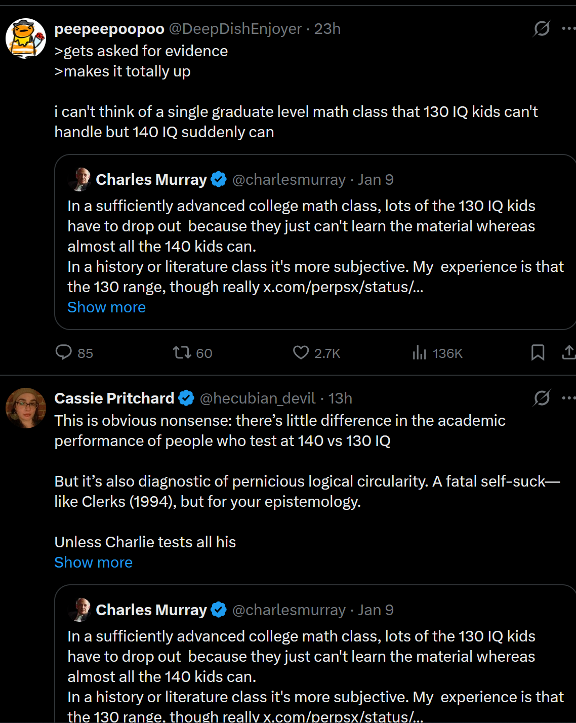 >>50566653my point had nothing to do with my level vs yours it was about the efficacy of jp subs for improving ur listening which a lot of retards itt think it does not at all. imo its the best of both worlds cause it improves both ur reading and listening concurrently + is the most fun. it's not as efficient at improving either compared to dedicated consumption but it's the best bang for ur buck in my experience >>50566655smart enough, would be nice to be a 140er but i won't ever be so what can you do