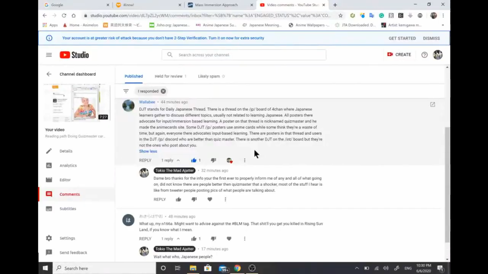he dropped japanese like 3 different times of course he didn't enjoy it