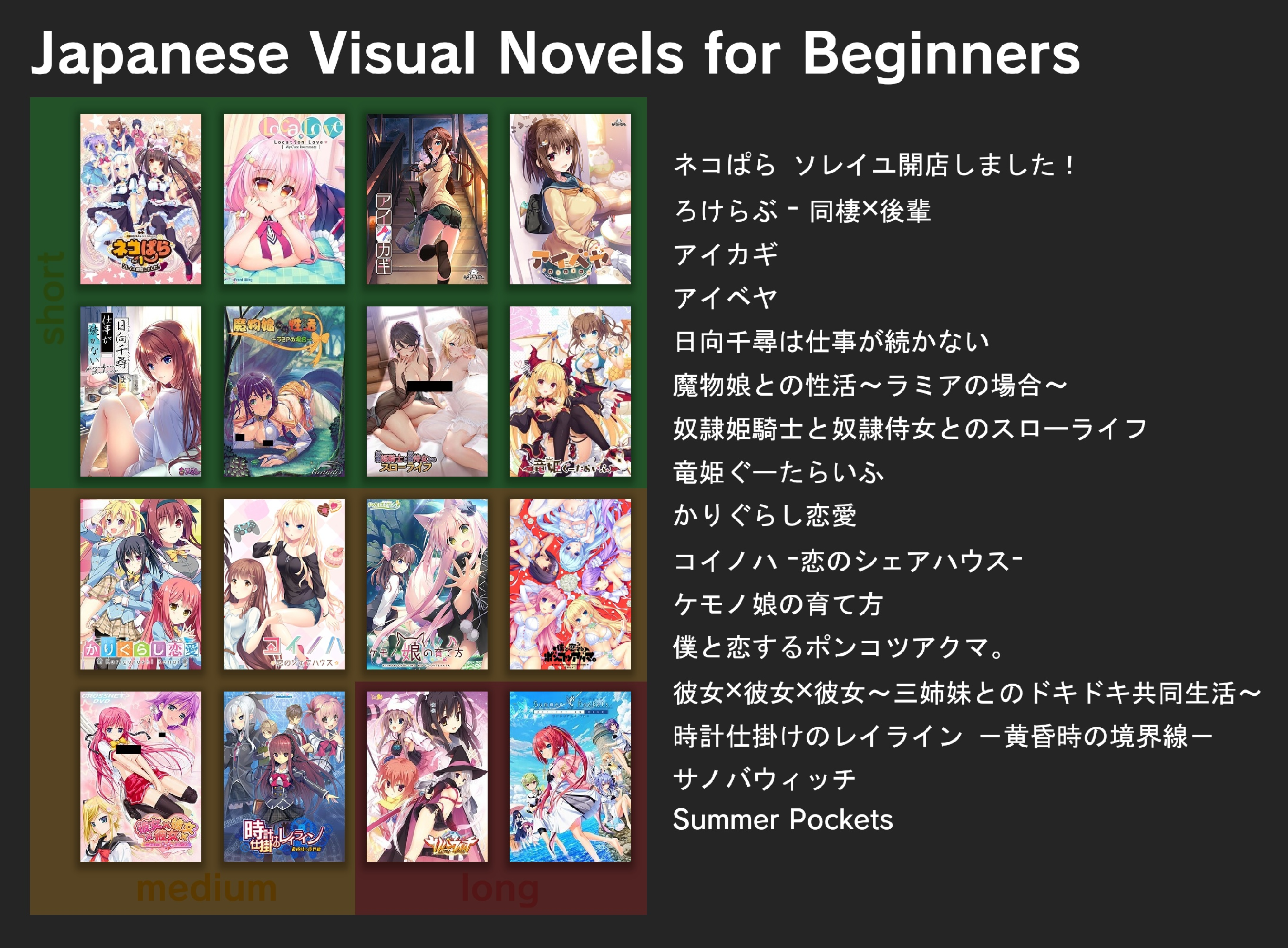 >>50567744Found this from the /jp/ archiveJust stick to slice of life stuff like romance and moege, the best one will be the one you want to read the most