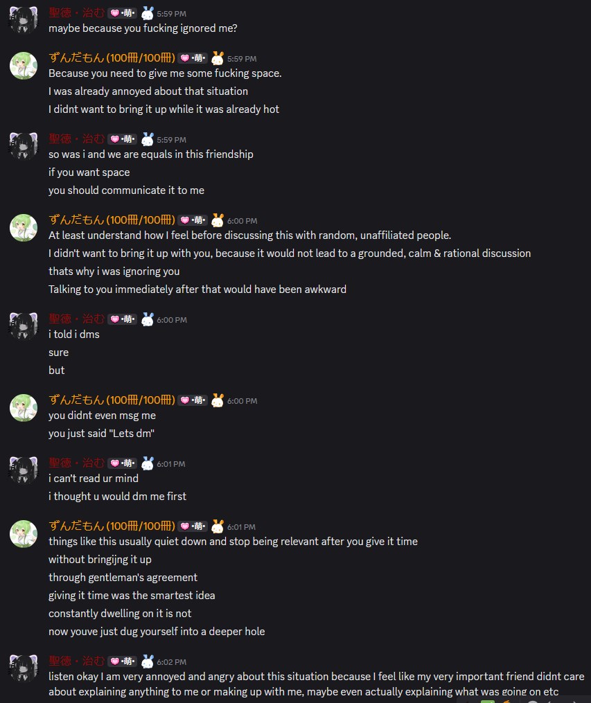MAJOR HAPPENING!!!! two of the most mentally ill members of the japanese community are having an epic showdown because one of them used the offensive word 'schizo'. the other is REFUSING to apologize. one of them just posted a SEVEN MINUTE VOICE RANT in response